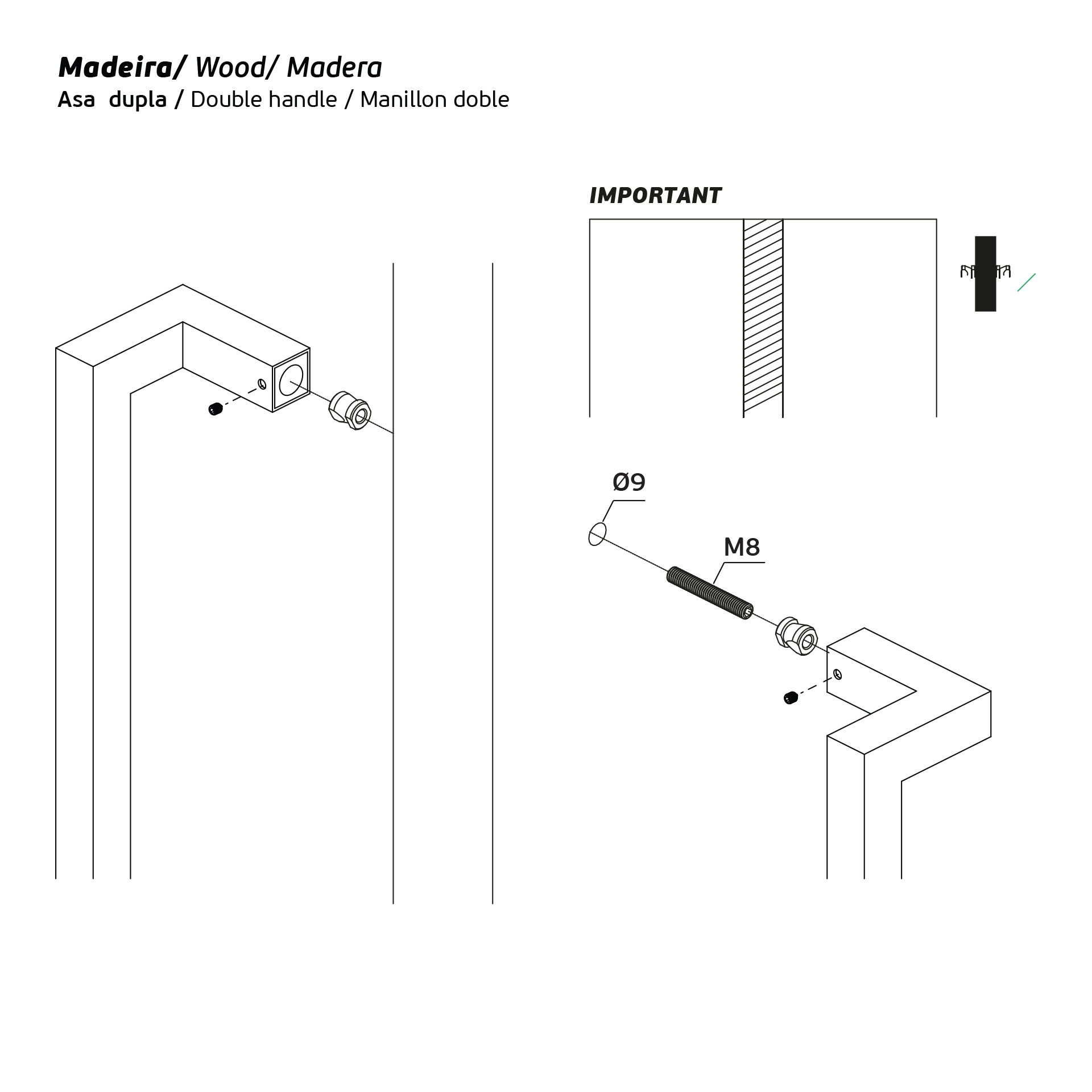 Asa de porta dupla IN.07.008.D.300.TG PVD Titanium Gold