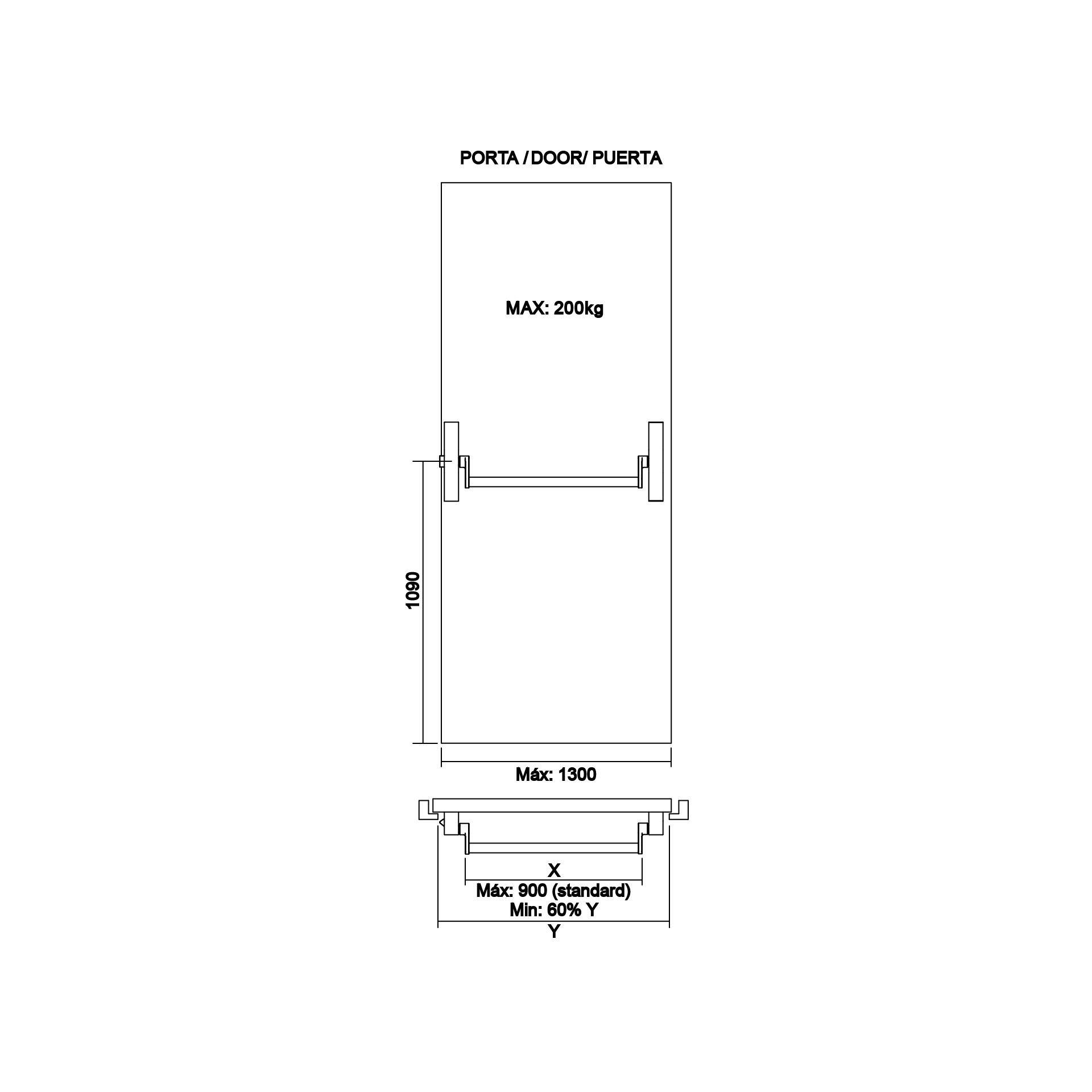 Barra anti-pânico reversível para porta de 1 folha.