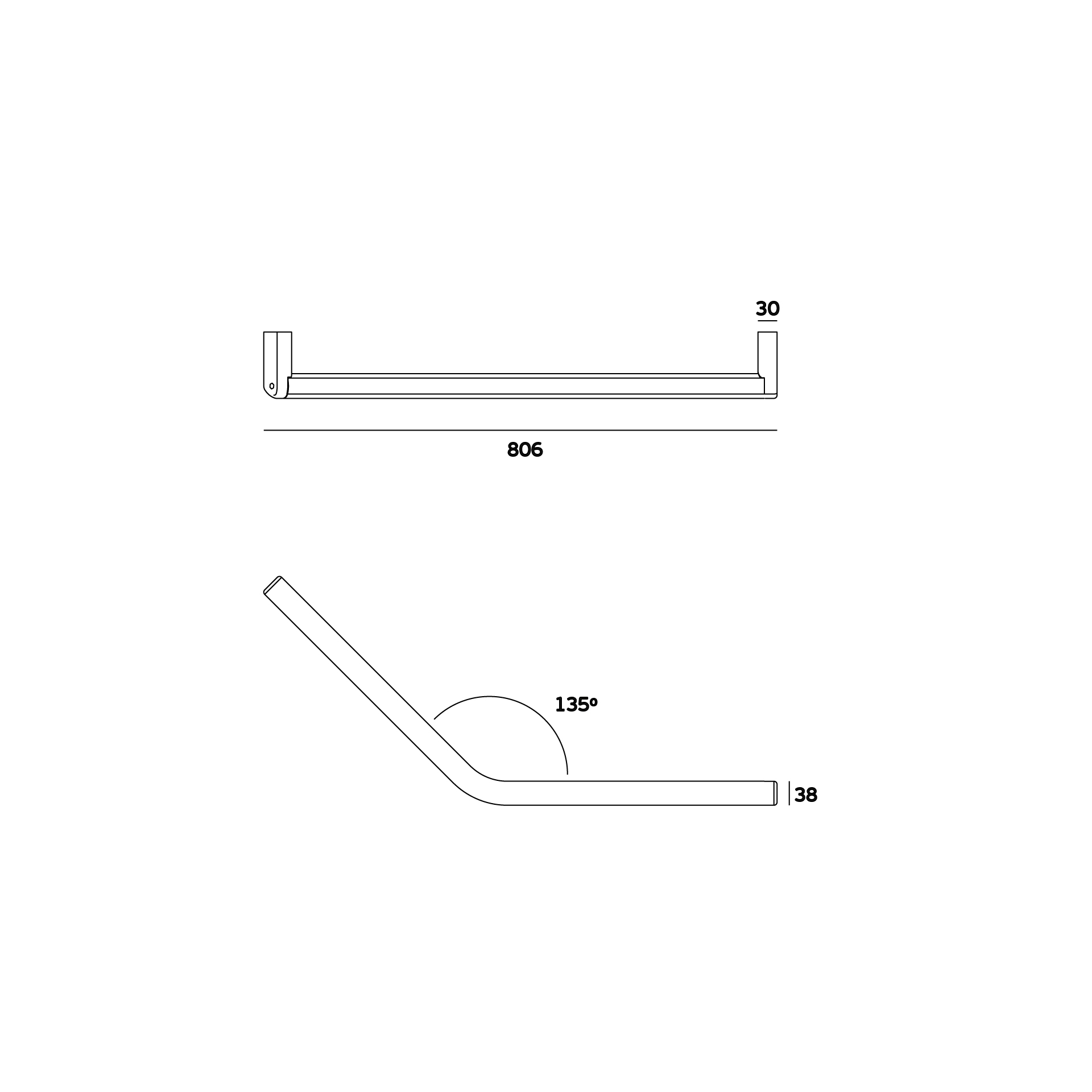 Barra de apoio com revestimento de superficie com propriedade antimicrobial (45º).