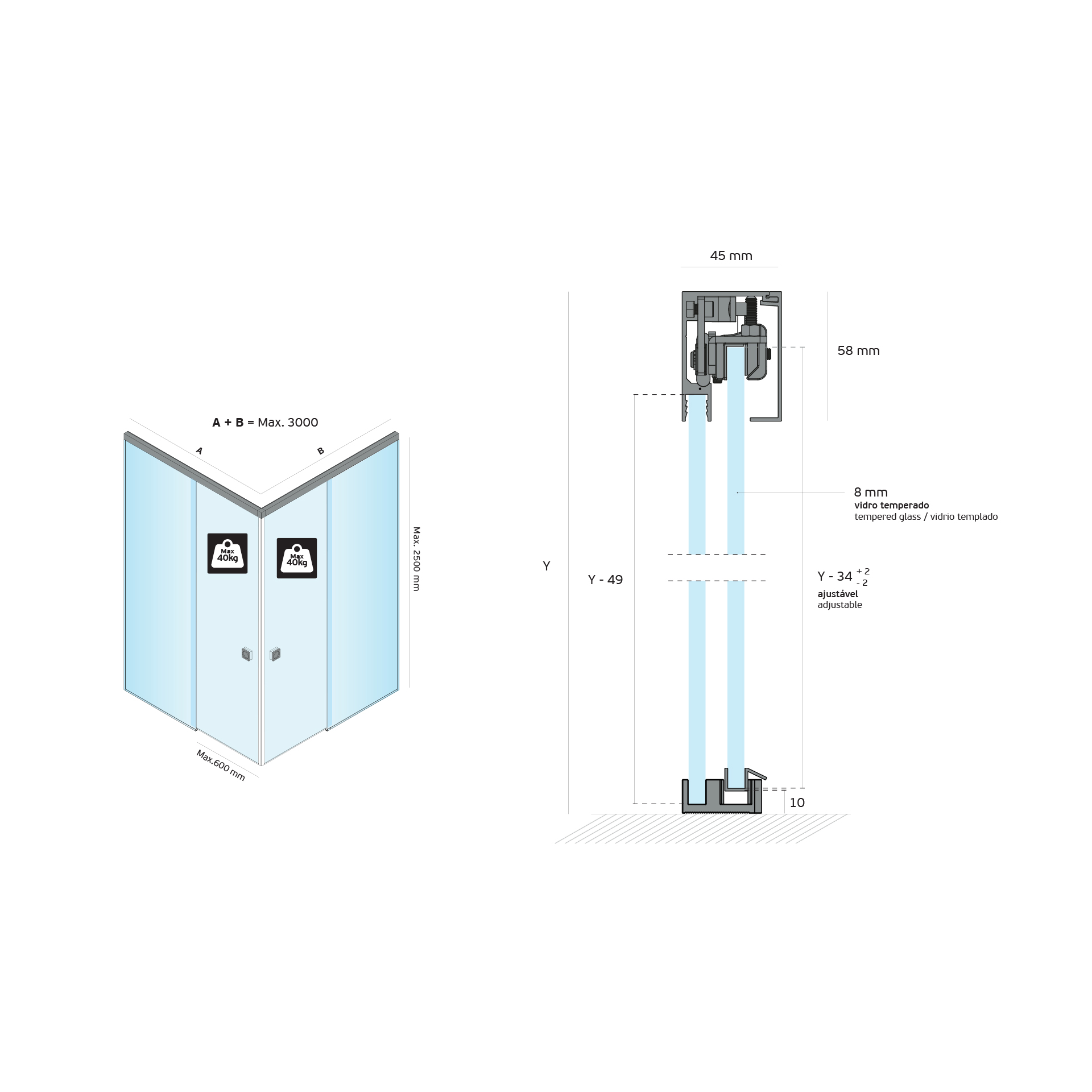Espessura Espessura do vidro: 8mm