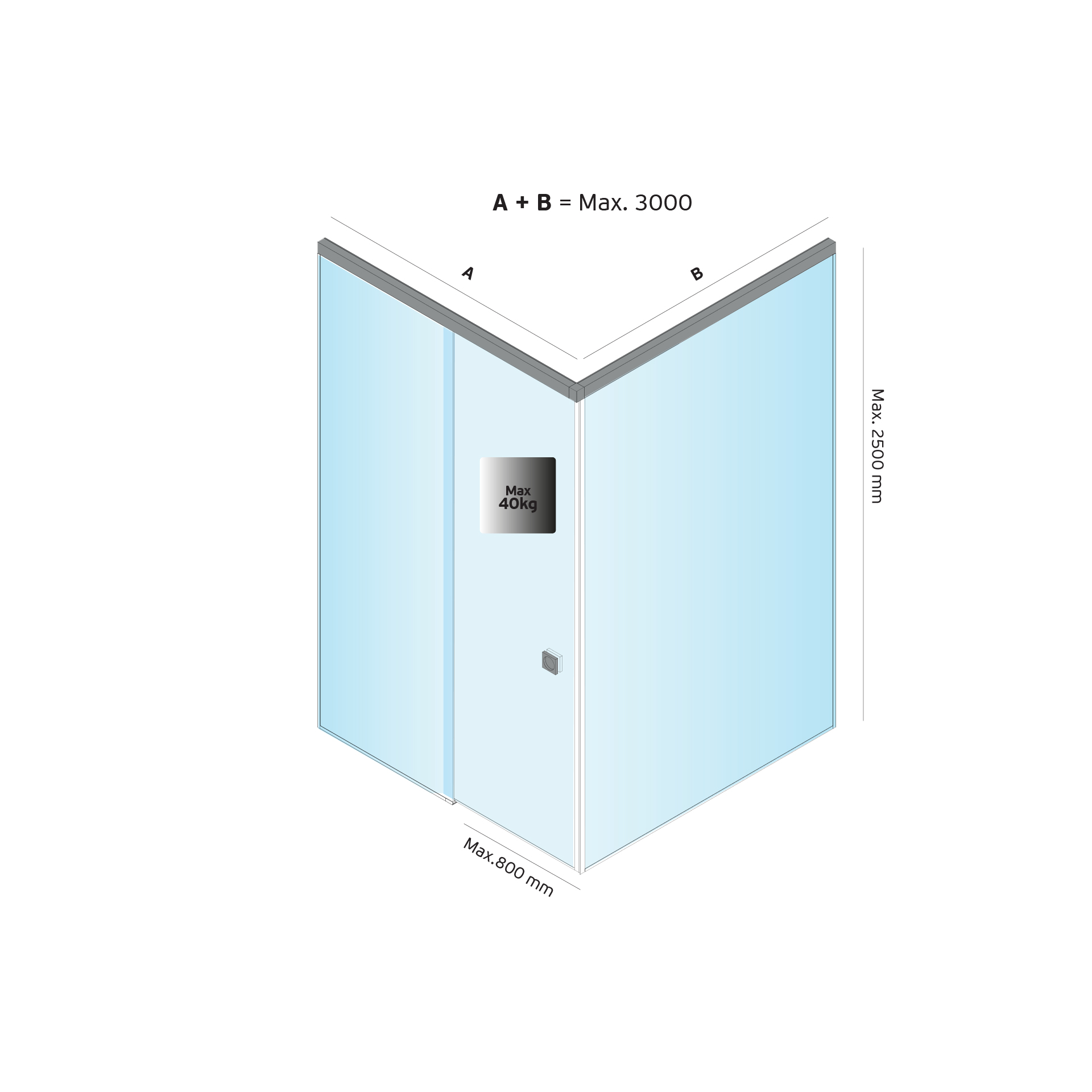 Cabine de chuveiro a 90º com 1 porta de correr com soft closing.