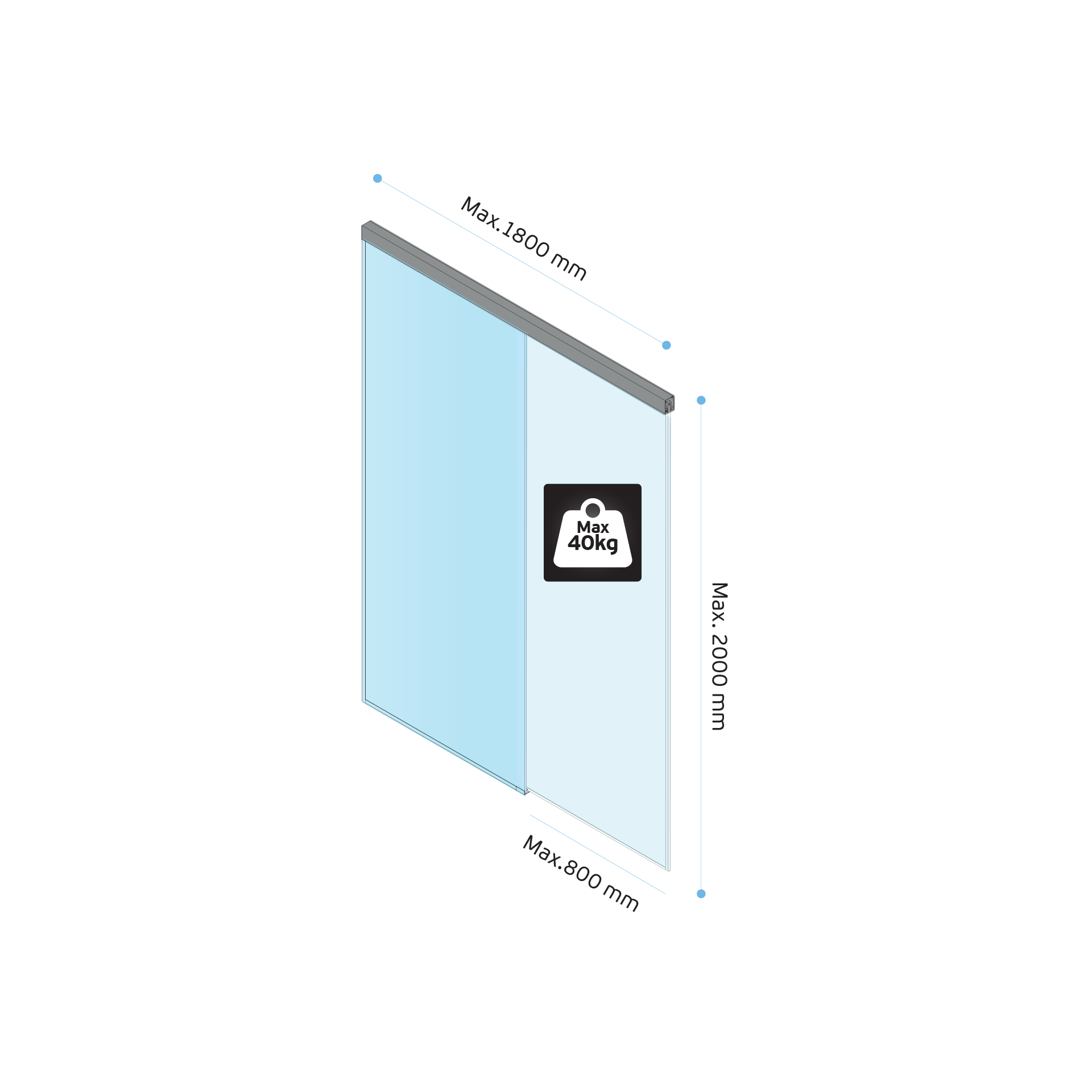 As rodas, são produzidas de nylon reforçado com rolamentos de esferas, correm com baixa fricção sobre o perfil de alumínio anodizado.