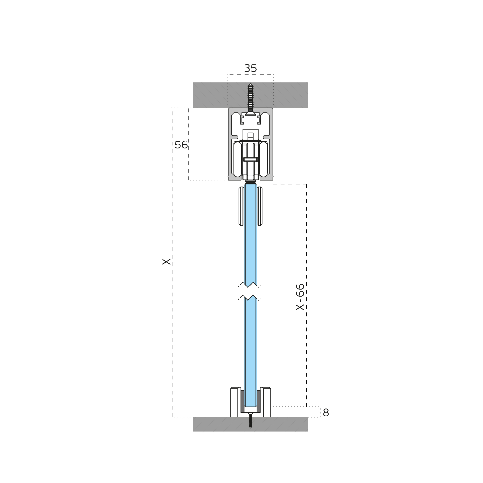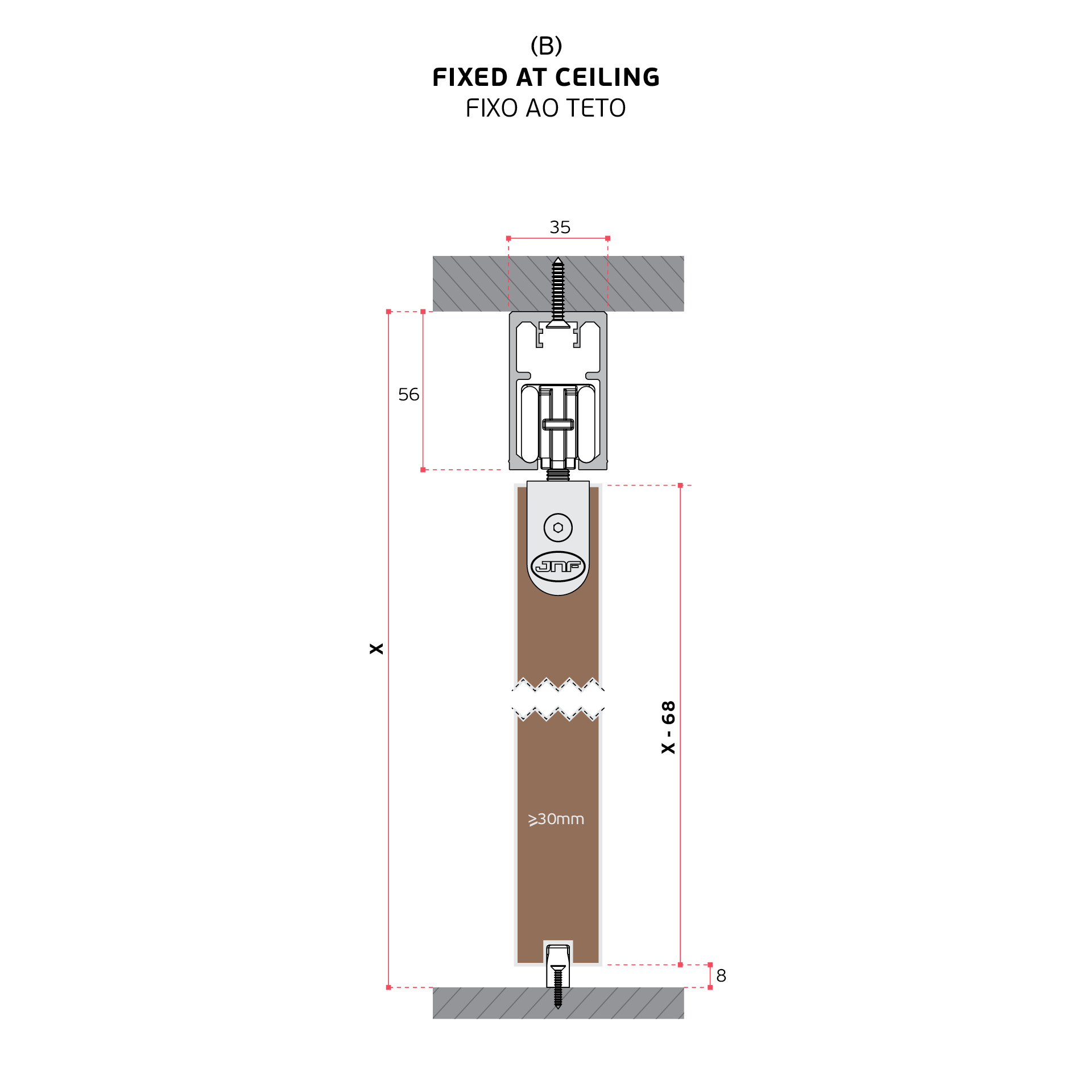 Carril superior de fixação ao tecto, instalar com calha complementar IN.15.954