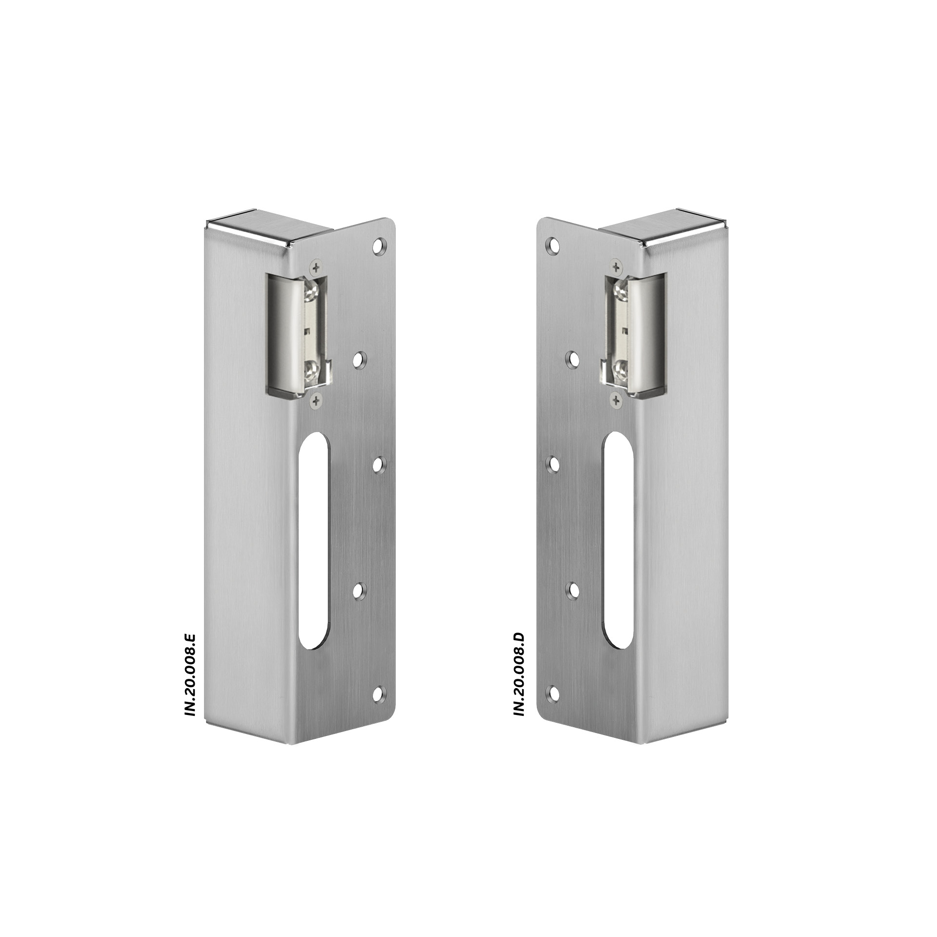 Testa elétrica para fechadura IN.20.005. Corrente de entrada 12 Vac-Dc. Trinco ajustável 4mm. Possibilidade de funcionar em modo passagem.