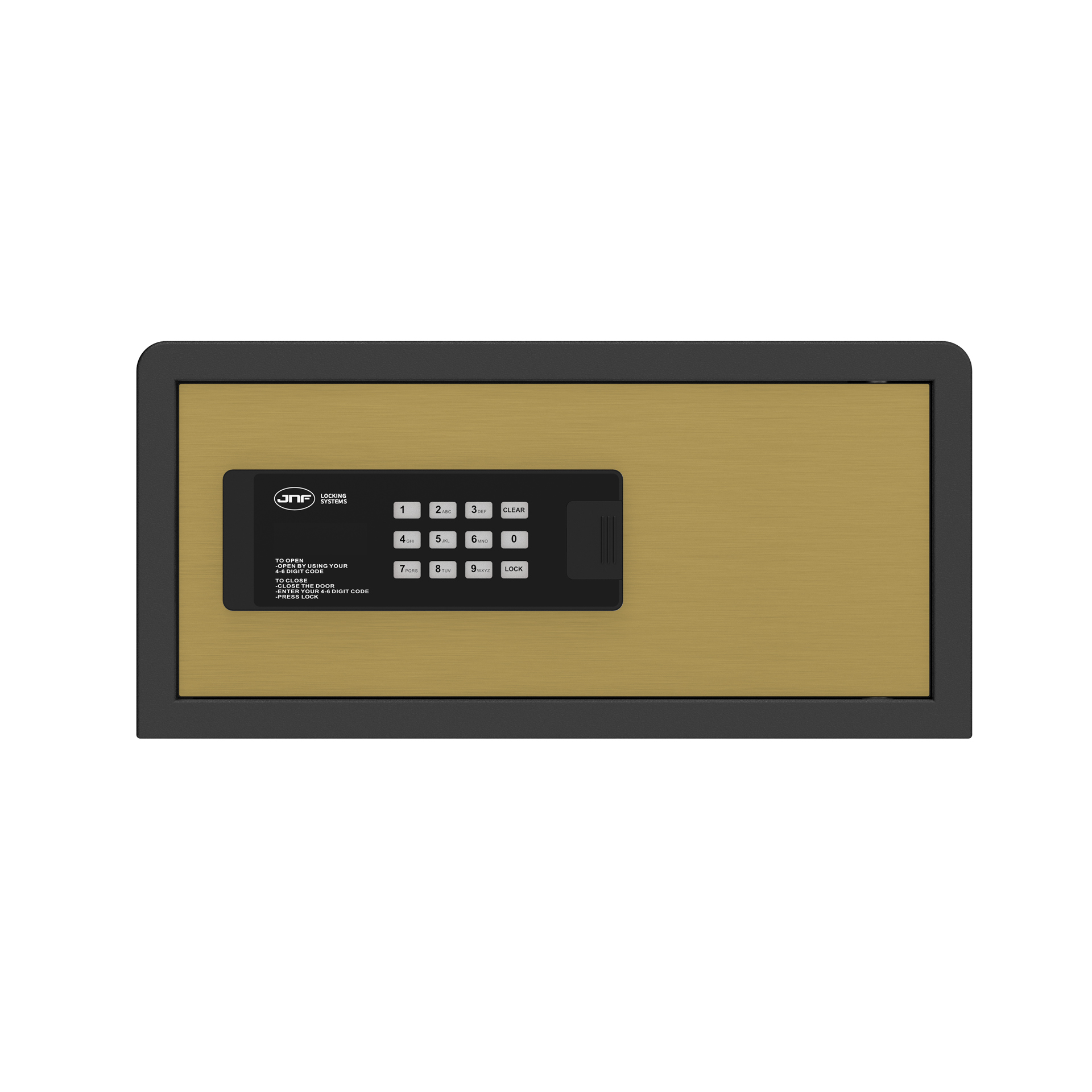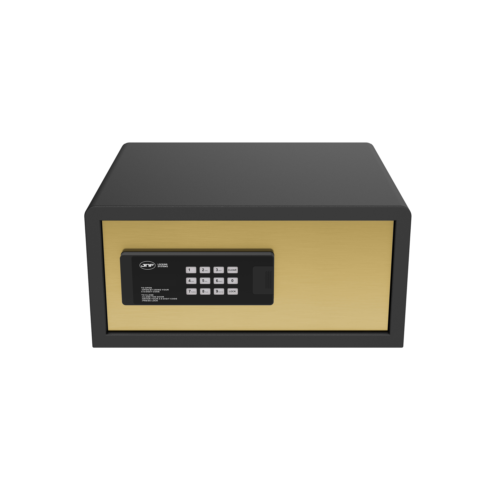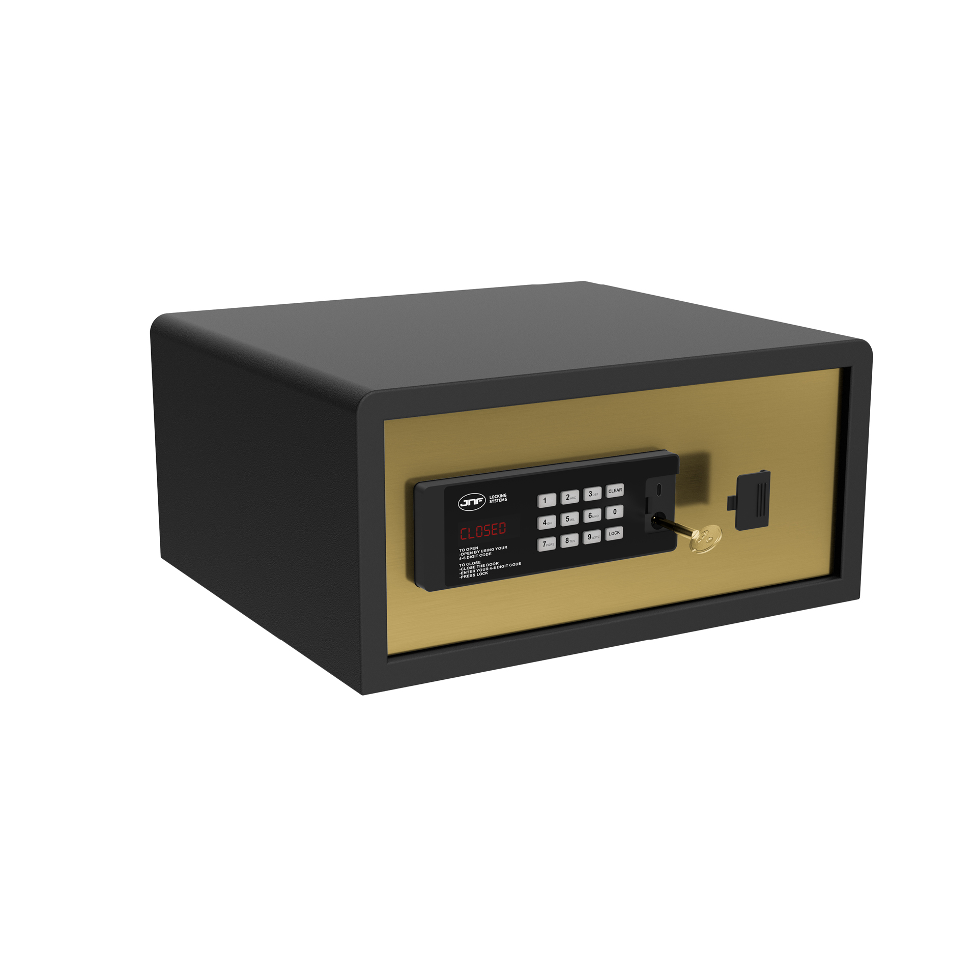 Cofre eletrónico digital para hotel, com teclado numérico analógico iluminado. Equipado com visor LED e código digital de 4 a 6 dígitos, oferece uma utilização simples e intuitiva, combinando um design sofisticado com elevada segurança.