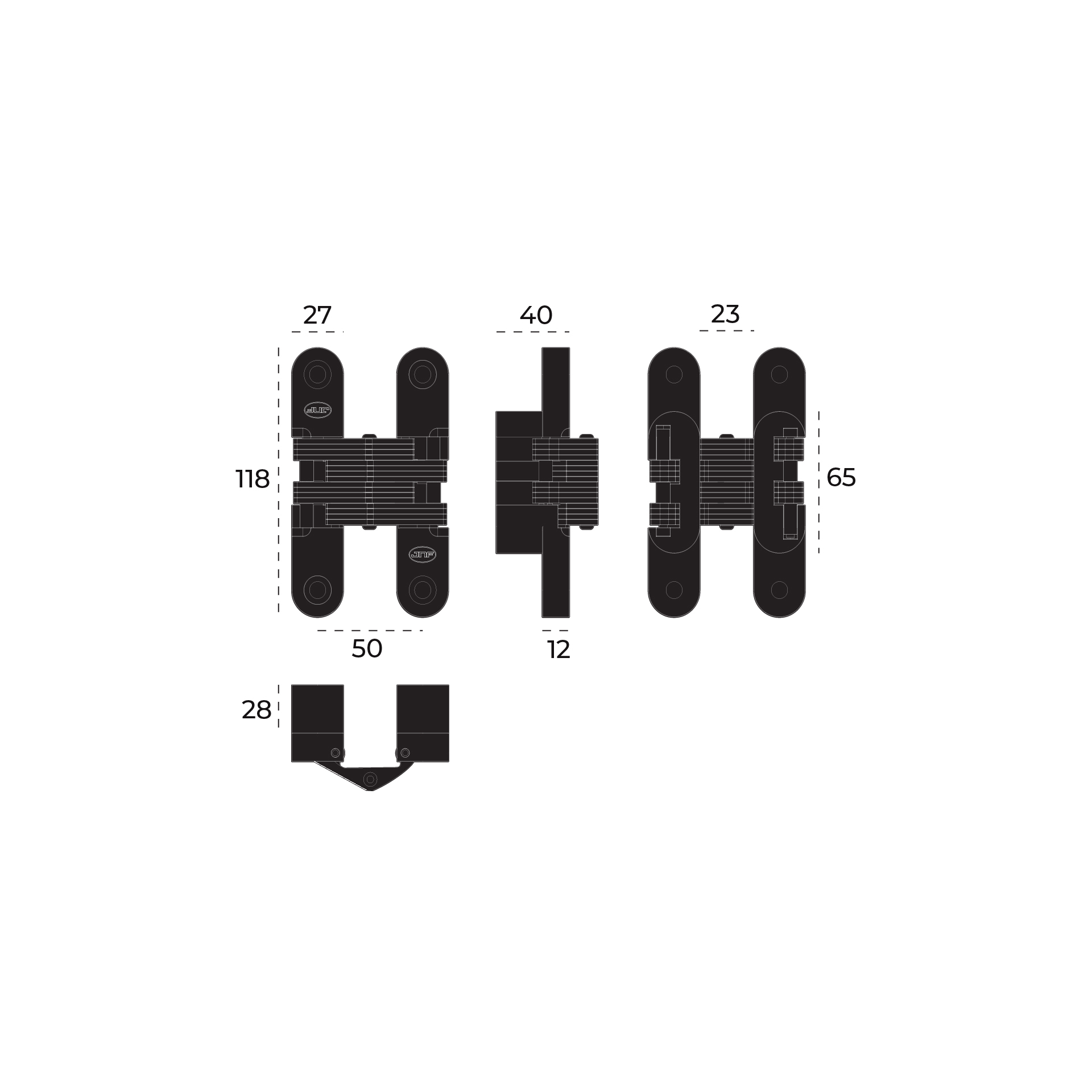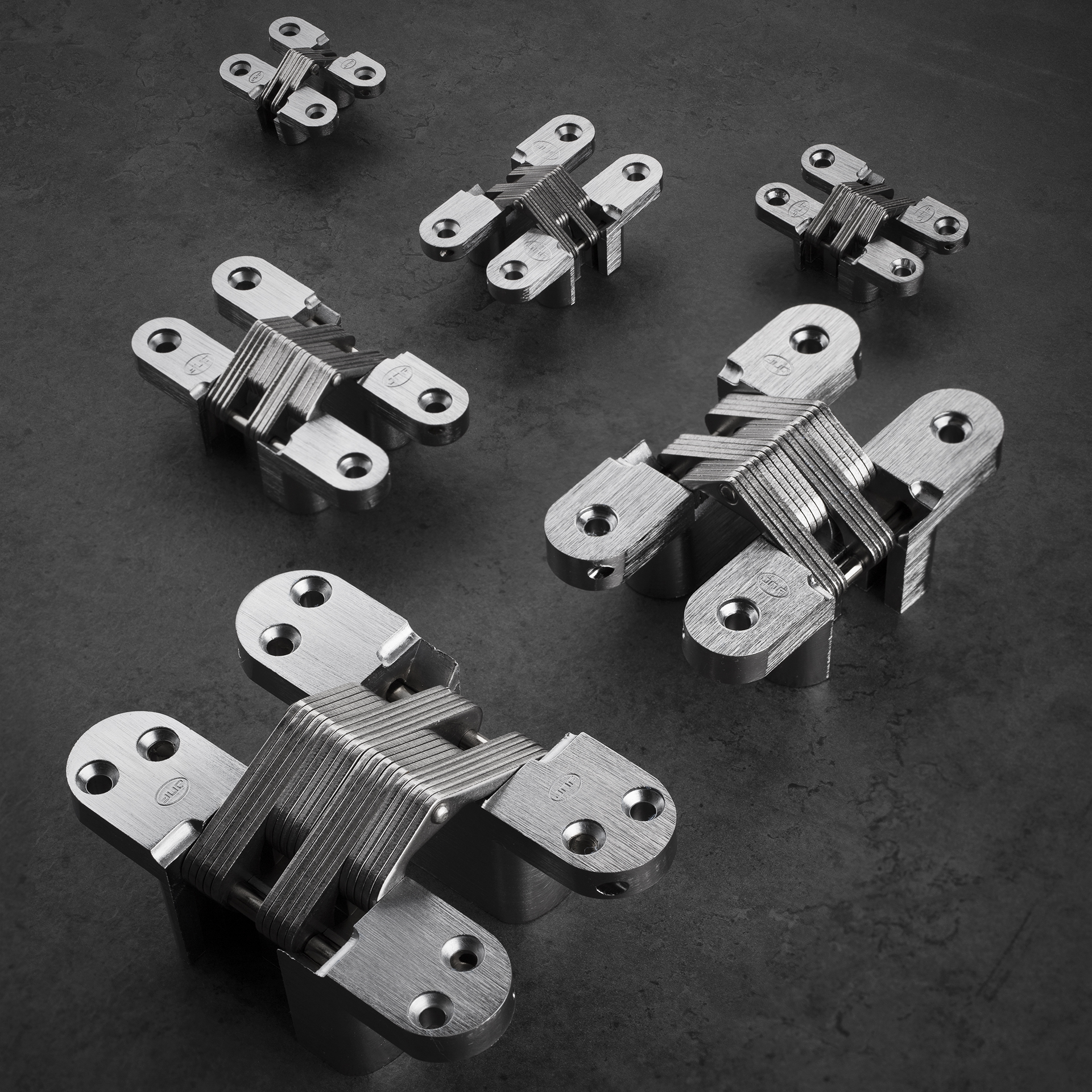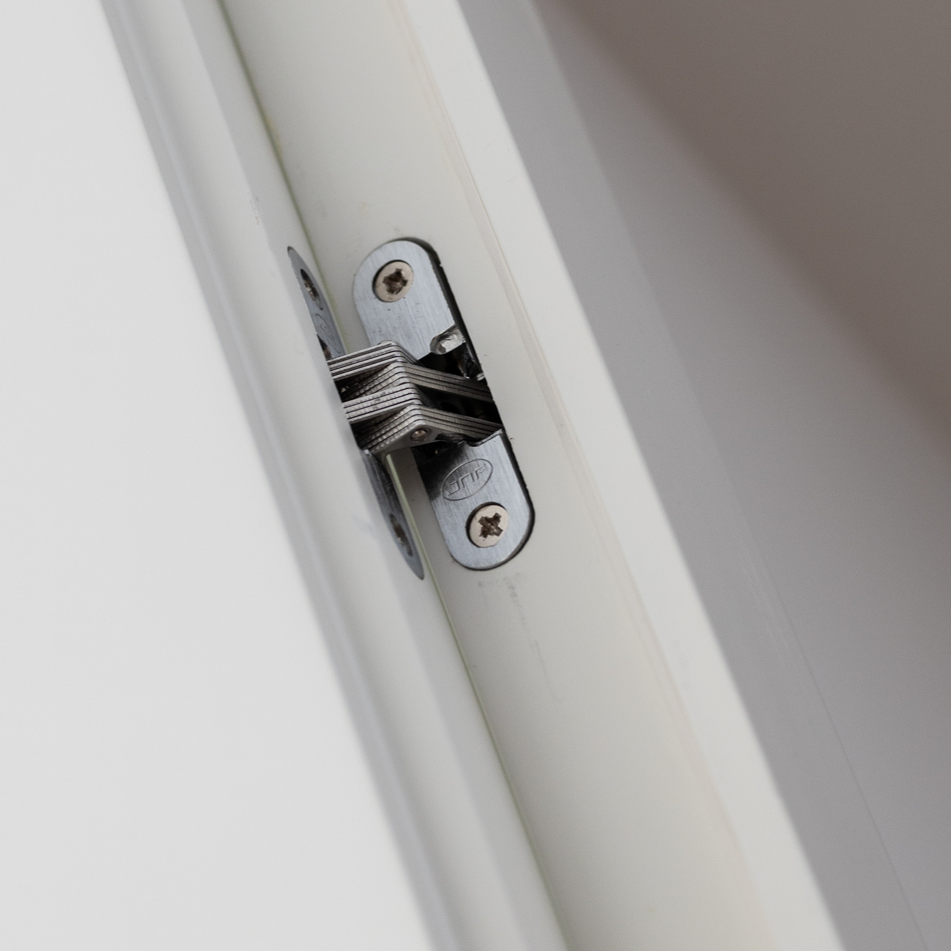 Dobradiça invisível para portas de edifícios.