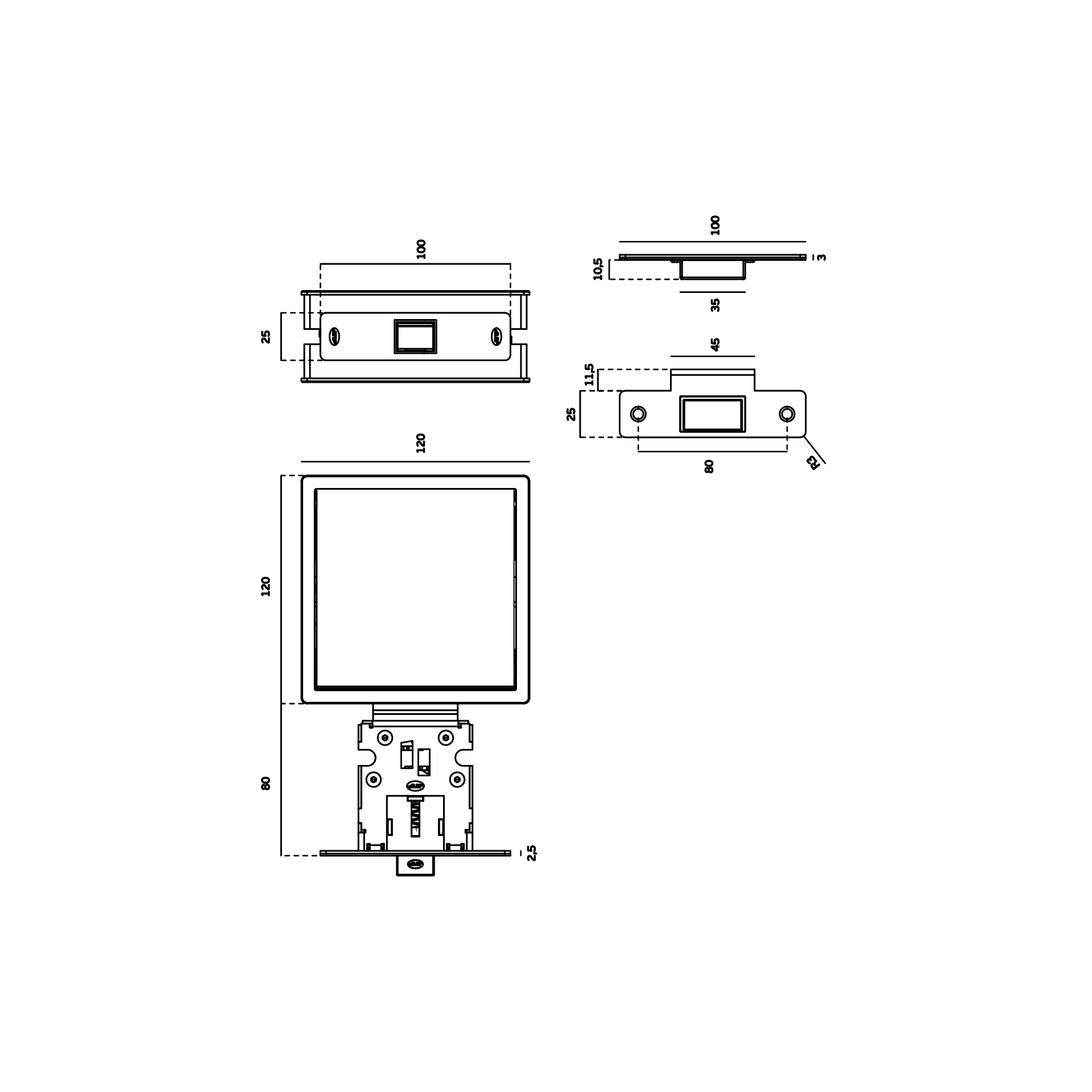 O puxador fica quase oculto funcionando por pressão, e ao ser acionado é projetado um elemento que serve para puxar a porta. A fechadura permite que o sistema de concha embutida tenha o máximo de projeção para o interior possível.