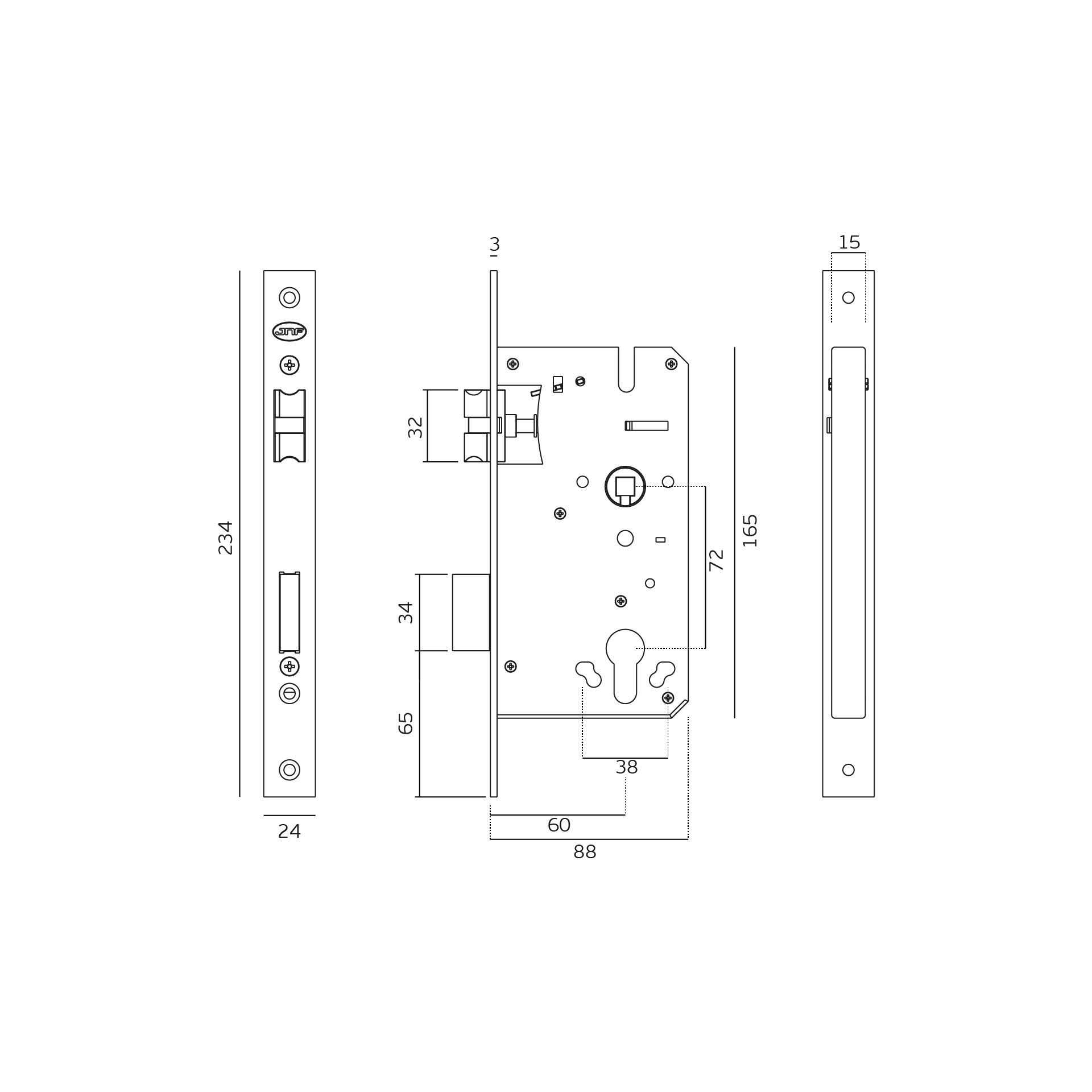 Fechadura de embutir para cilindro europeu.