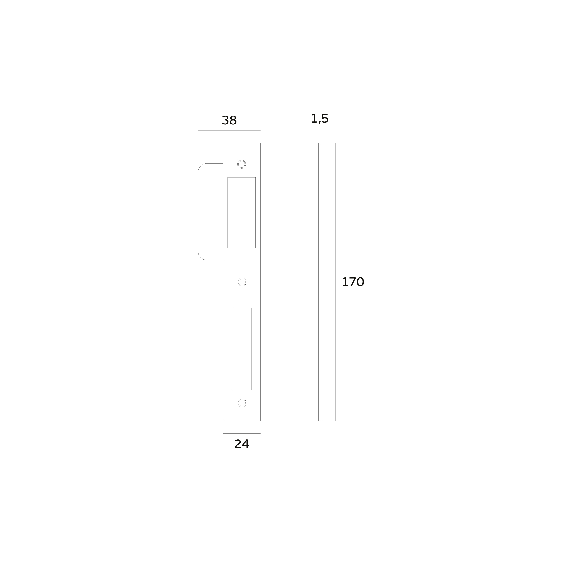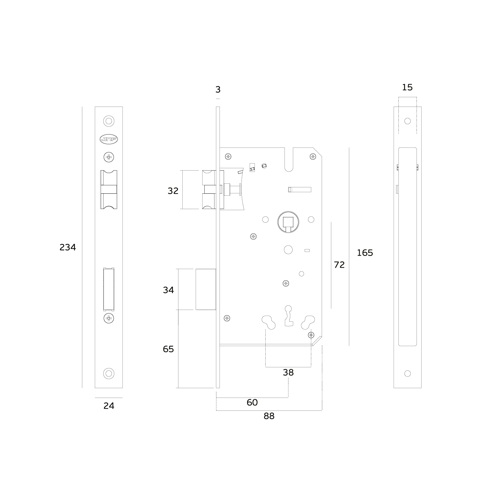 Fechadura de embutir com chave normal. Chave com 12 combinações.