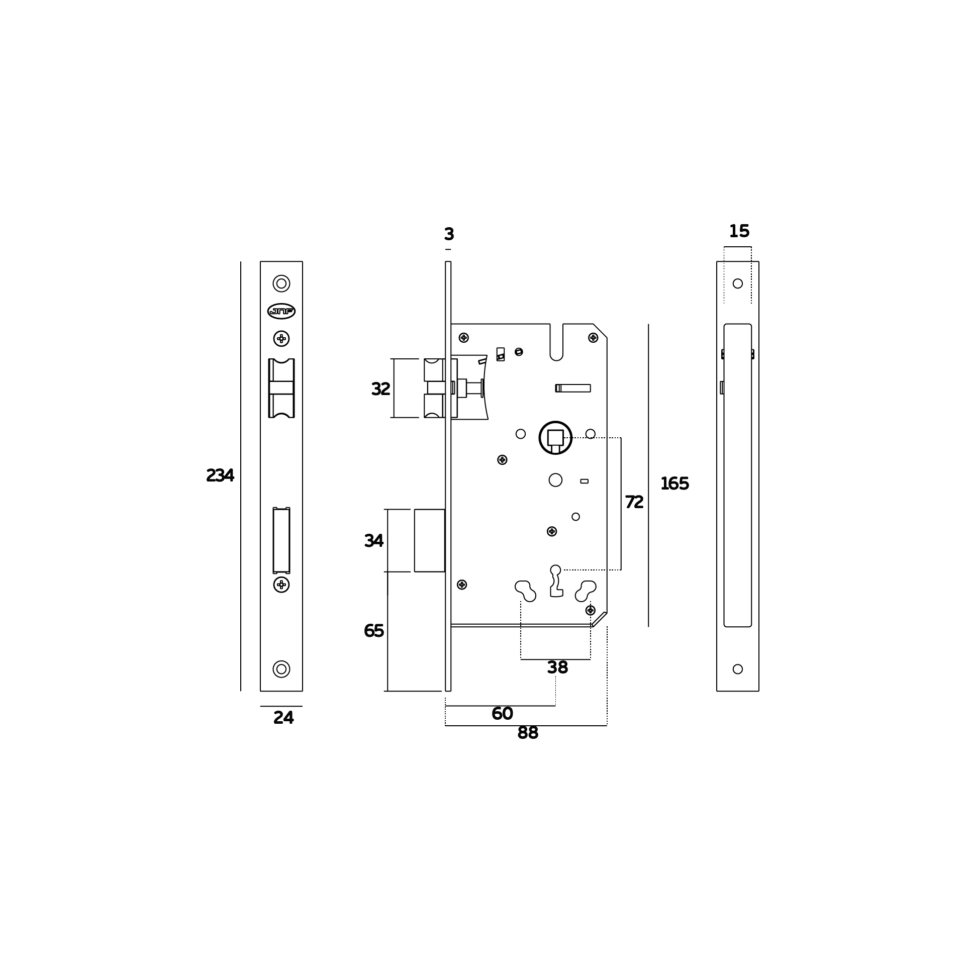Fechadura de embutir com chave normal. Chave com 12 combinações.