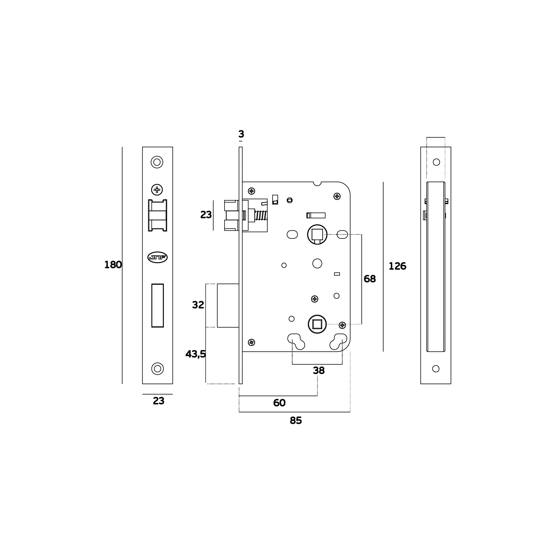 Fechadura de embutir para casa de banho.