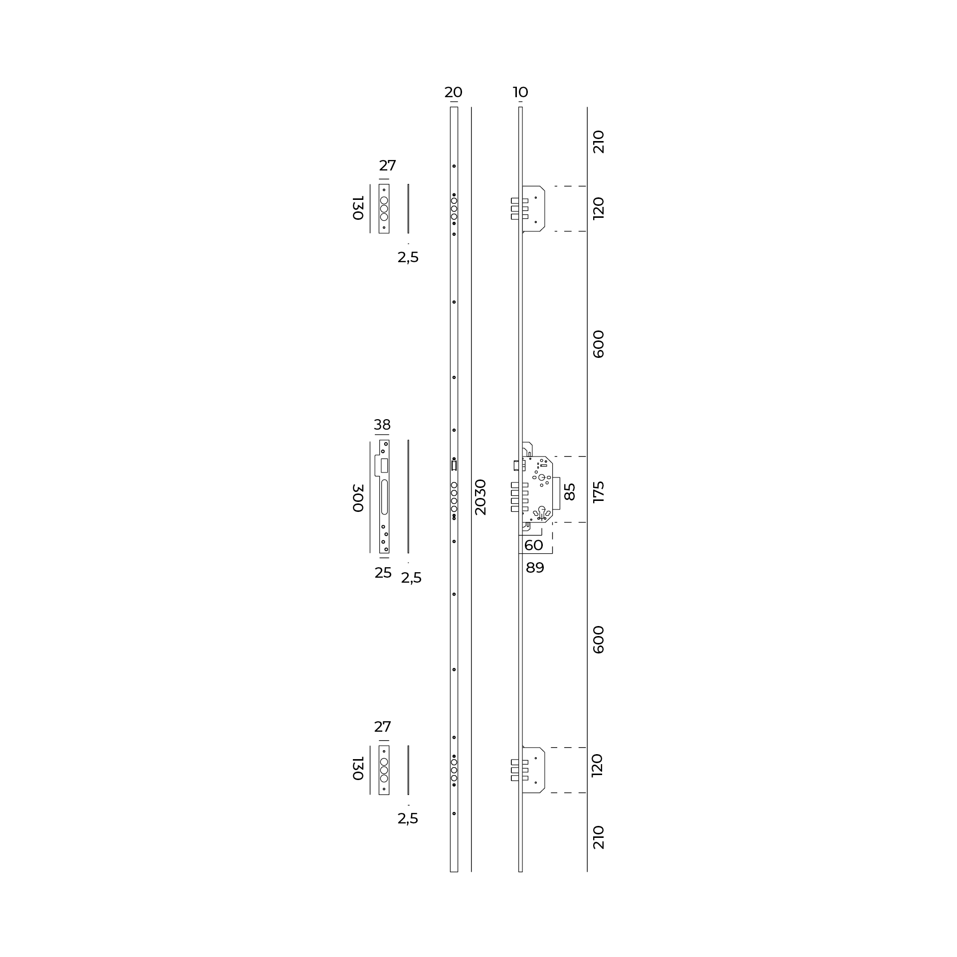 Fechadura de três pontos com escudete de segurança. A série de segurança foi criada para ser utilizada em portas que estão sujeitas a uma utilização elevada.