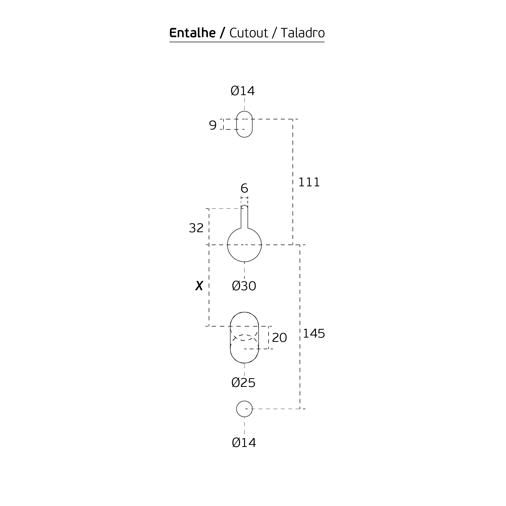 Placa cega em ambos os lados. Puxador IN.00.028.SR. Fechadura de embutir IN.20.601.R, com função antipânico e anti cartão. Certificação CE, corta-fogo/fumo (EN12209/EN179). Switch de ligação ao controlo de acessos que monitoriza o fecho pelo interior. Cilindro europeu IN.19.S05.35.35 (fica oculto, podendo ser acedido em caso de emergência).