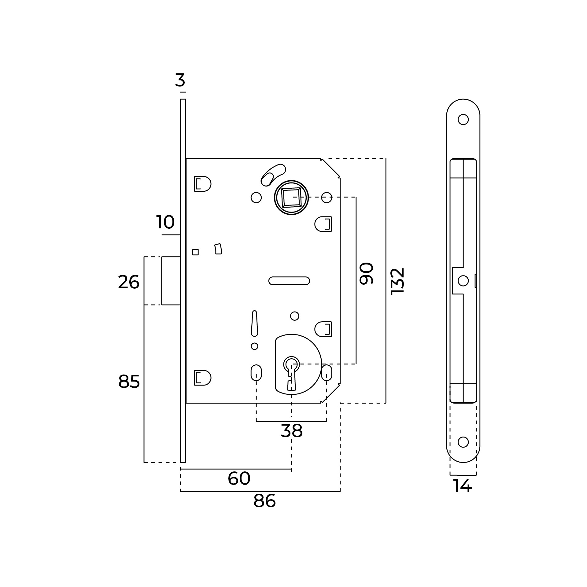 Fechadura de embutir magnética com chave normal.