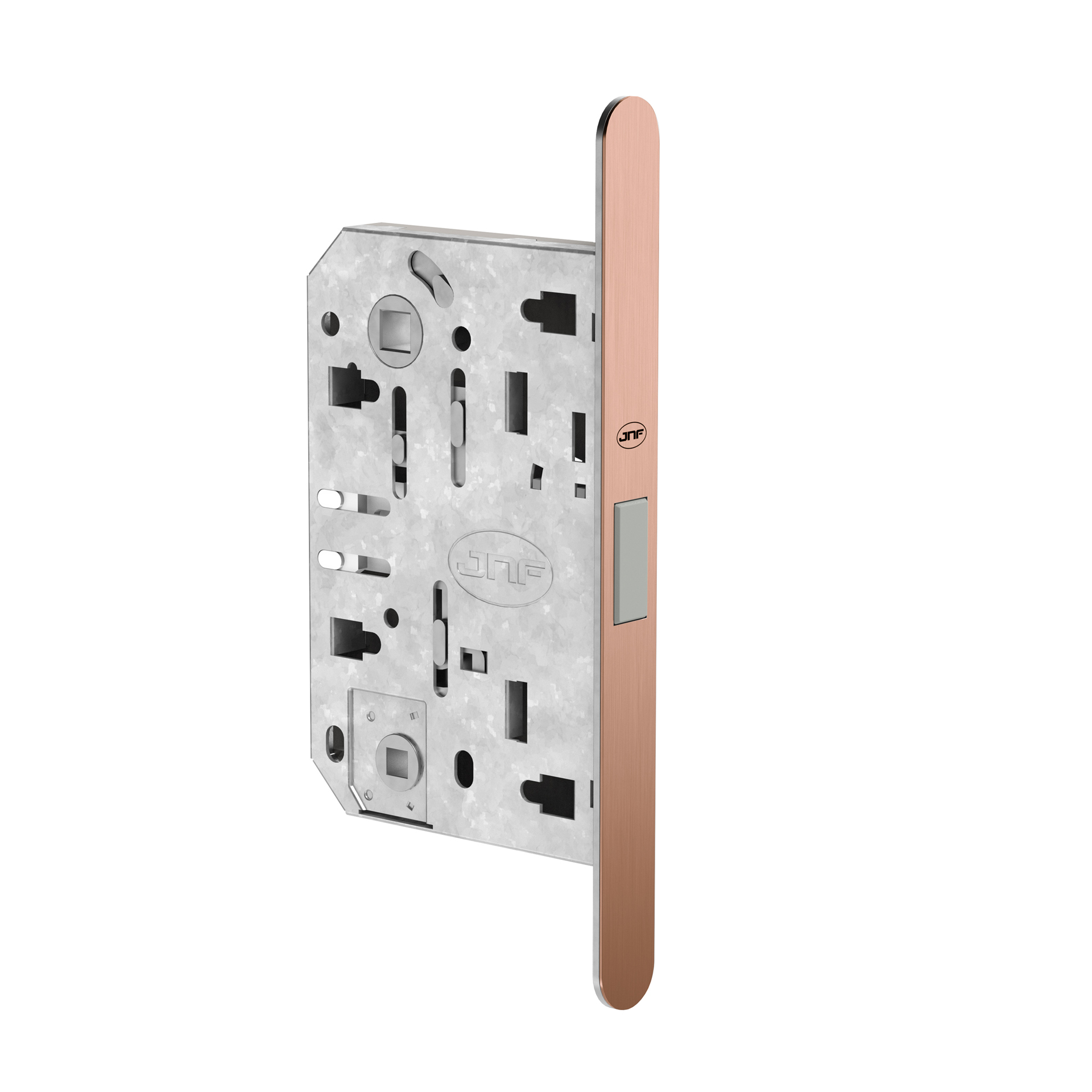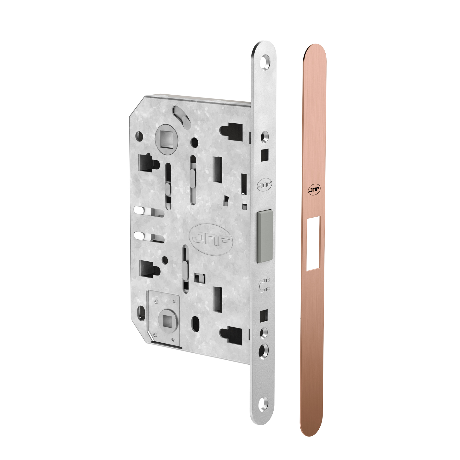 Fechadura de embutir magnética para casa de banho com parafusos de fixação ocultos. Indicada para portas com uso médio.