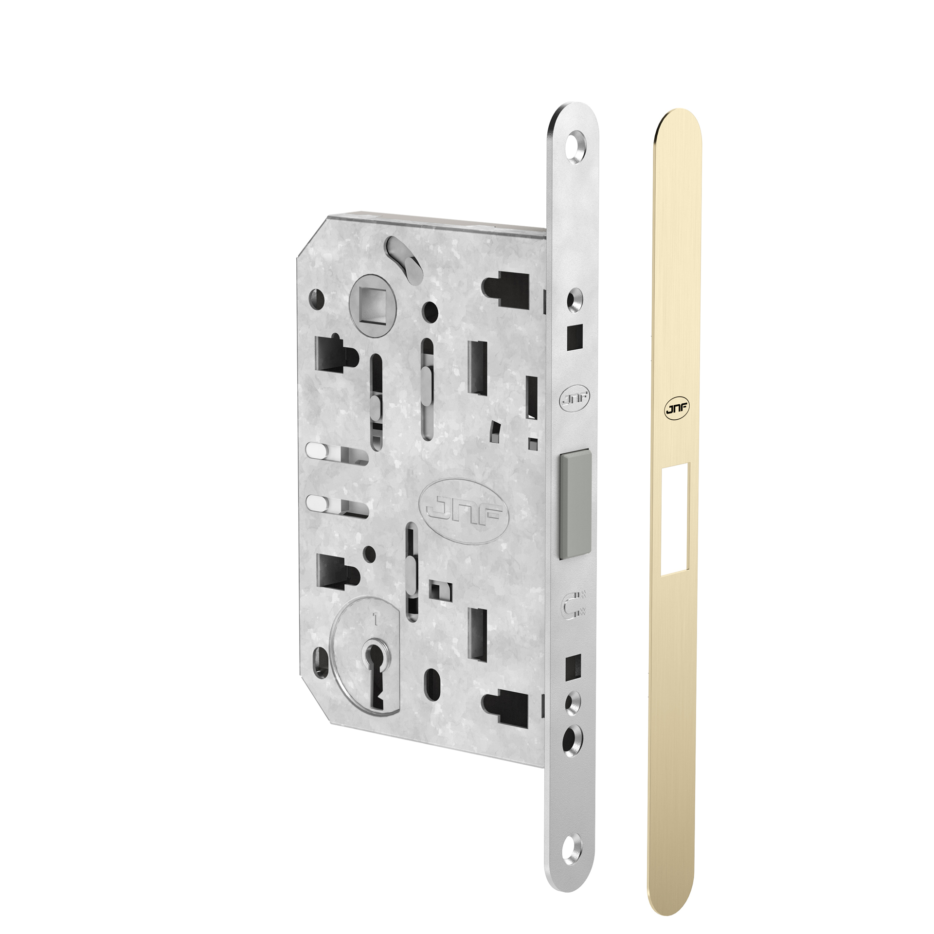 O mesmo entalhe na porta permite a aplicação de 3 modelos de fechaduras com funções diferentes. A maquinação da porta é simétrica, o que a torna reversível.