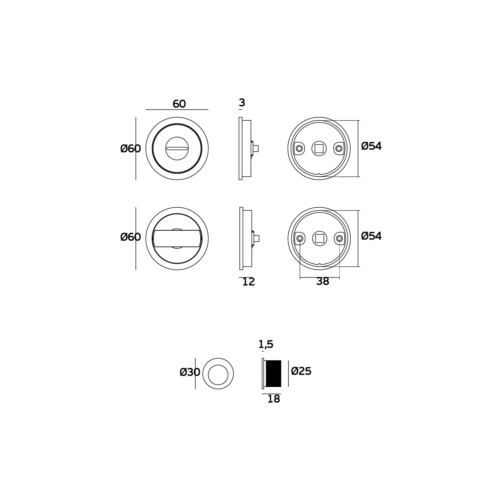 Fechadura para portas de correr com concha redonda.