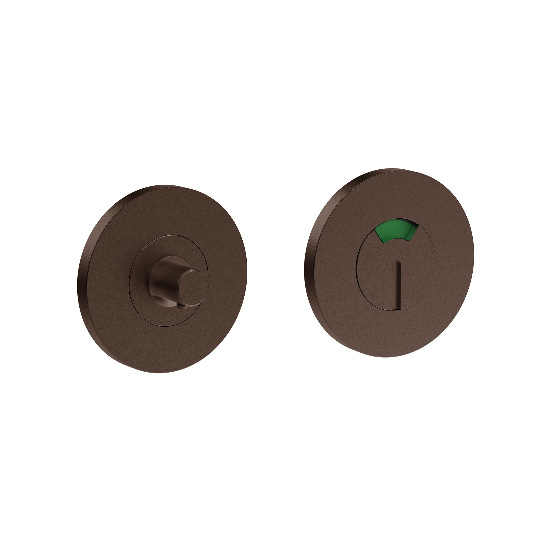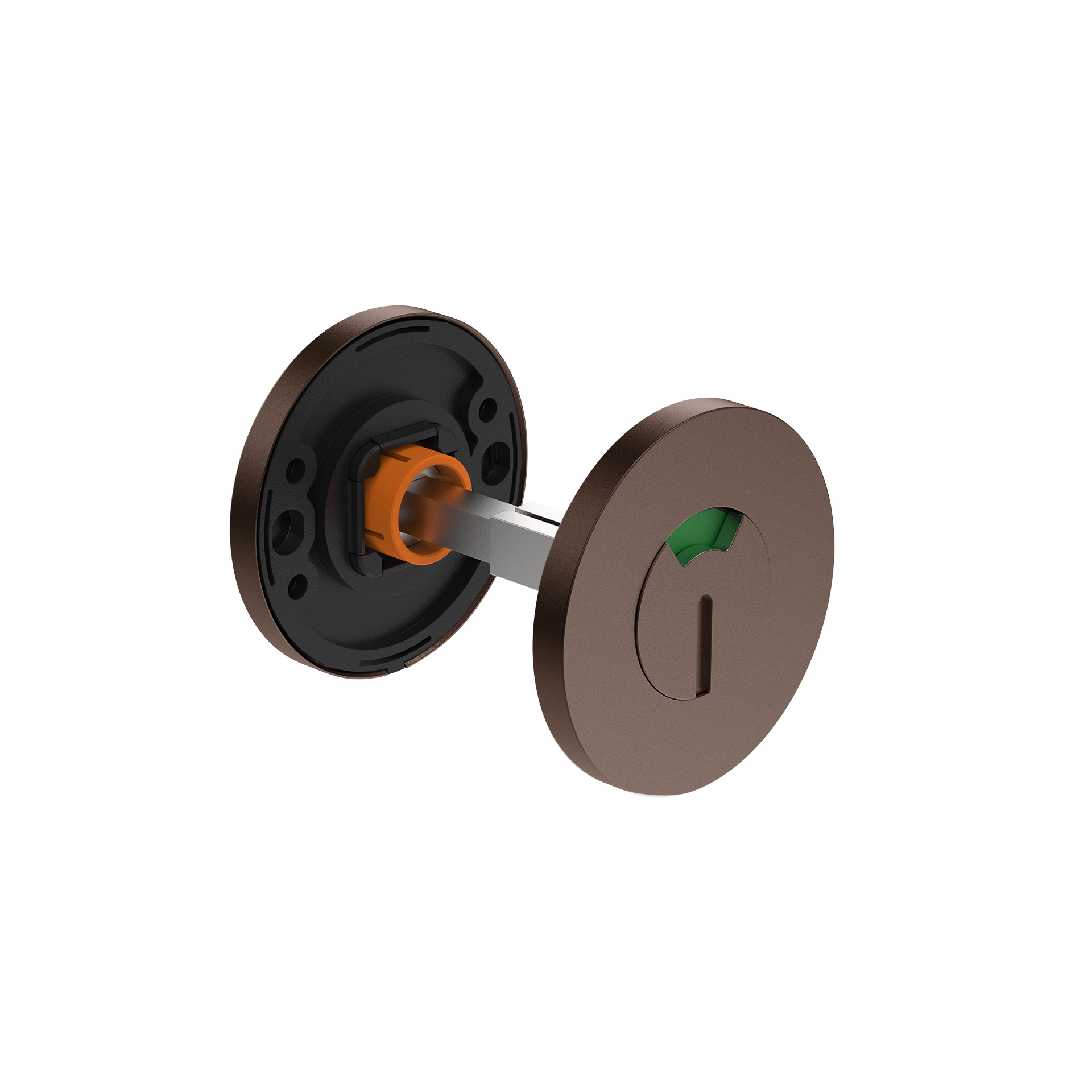 Fecho de casa de banho ergonómico, com indicador de cor, para utilização com fechaduras de embutir. Garante privacidade com possibilidade de abertura de emergência pelo exterior. Botão ergonómico para uma operação confortável, mesmo em espaços reduzidos.