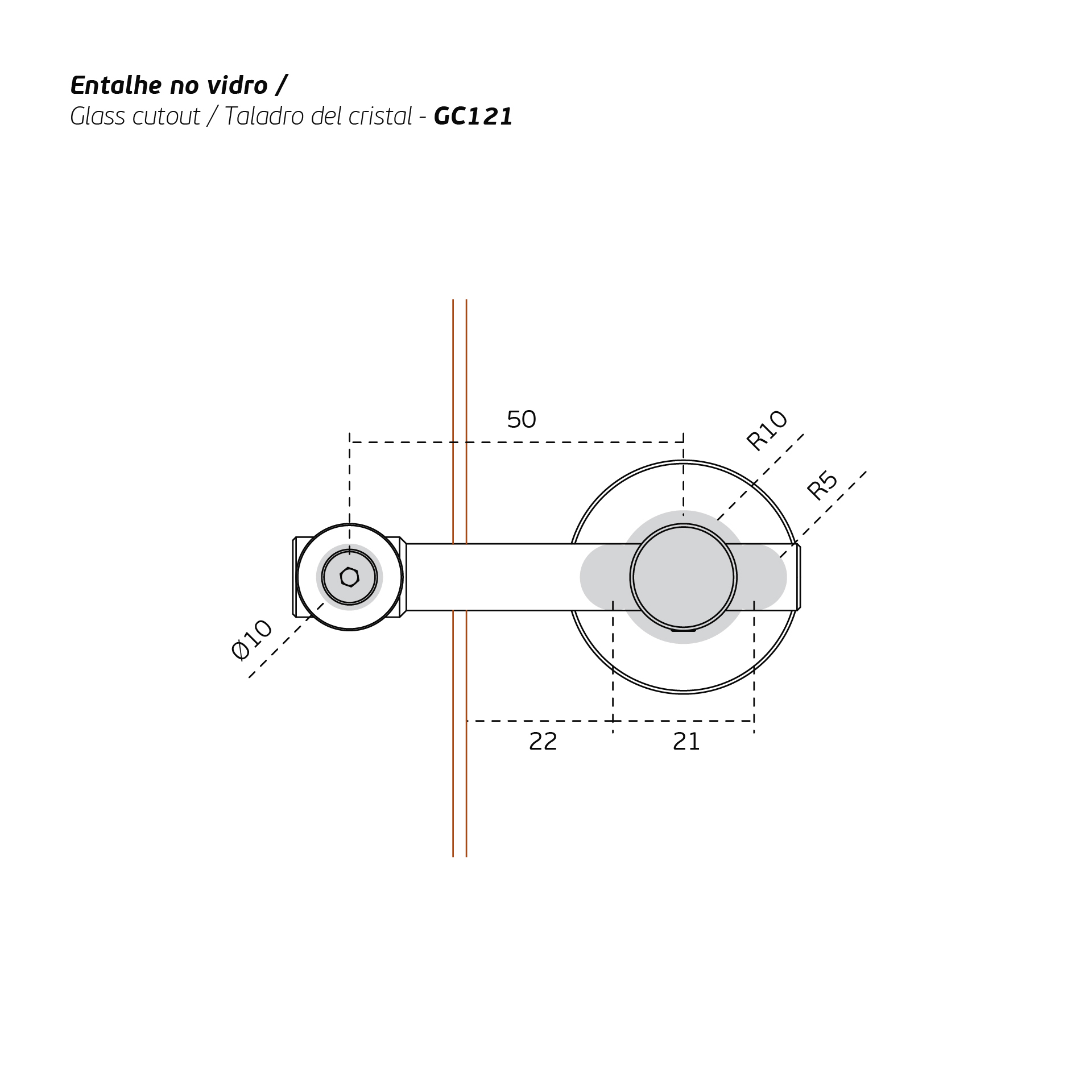 Fecho com indicador de cor para portas de correr em vidro