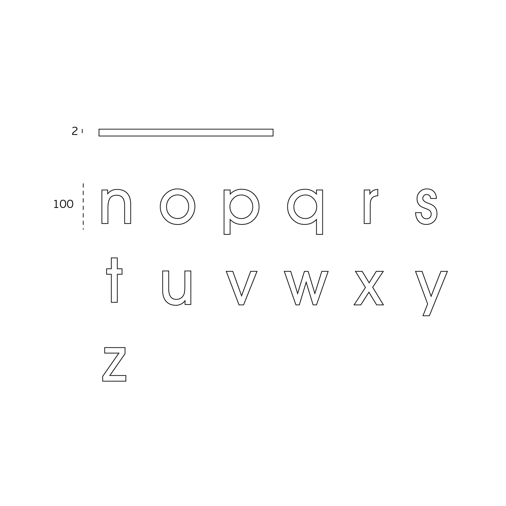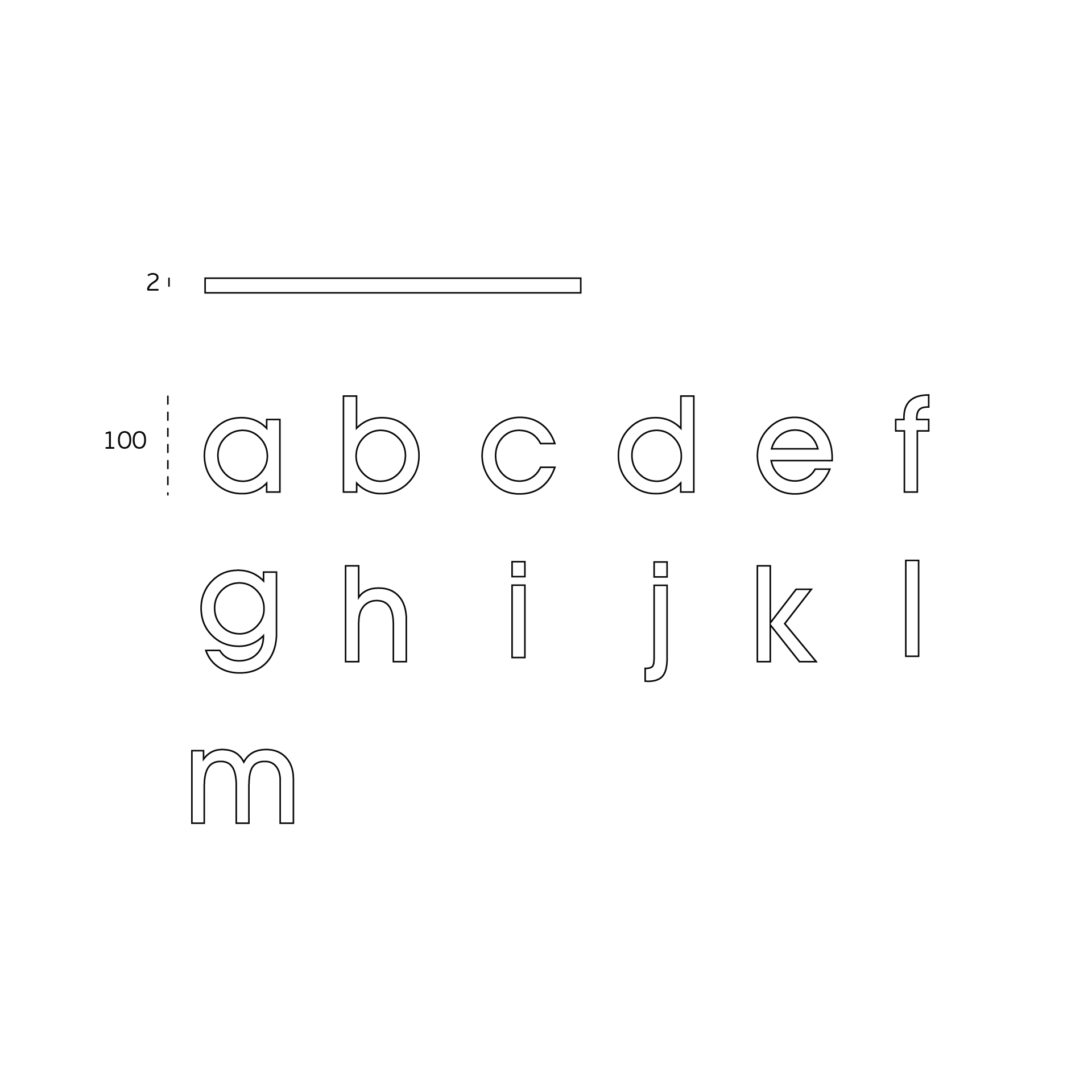 Letra minúscula com fixação oculta por adesivo extra-forte.
