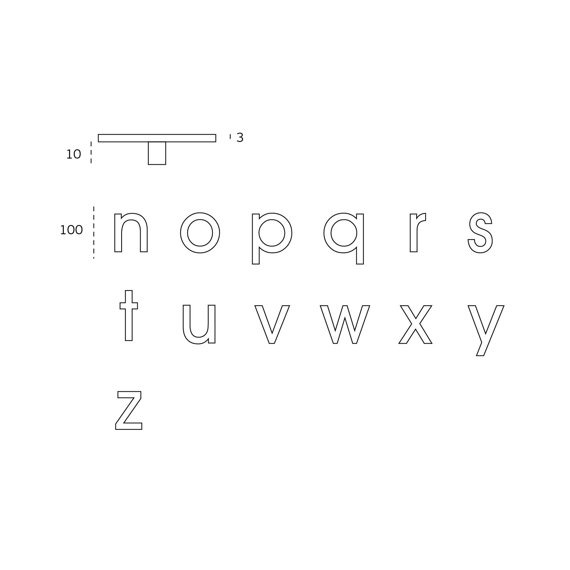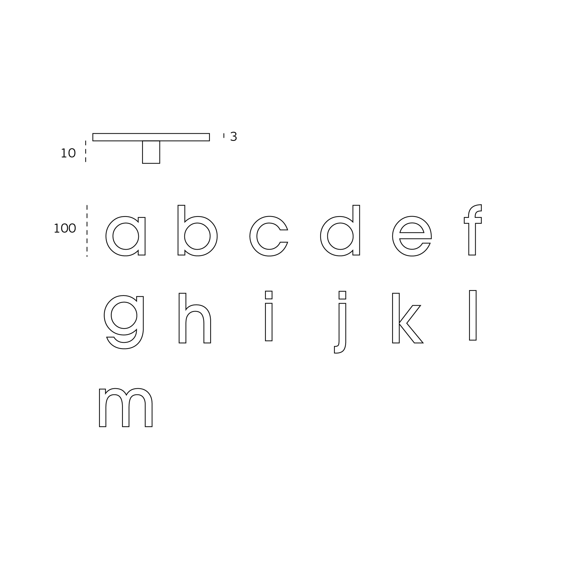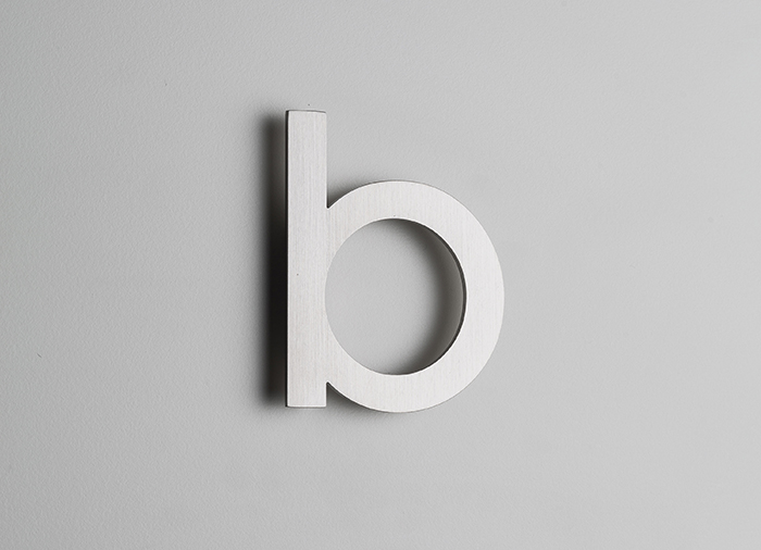 Letra minúscula com fixação oculta por parafusos à parede.