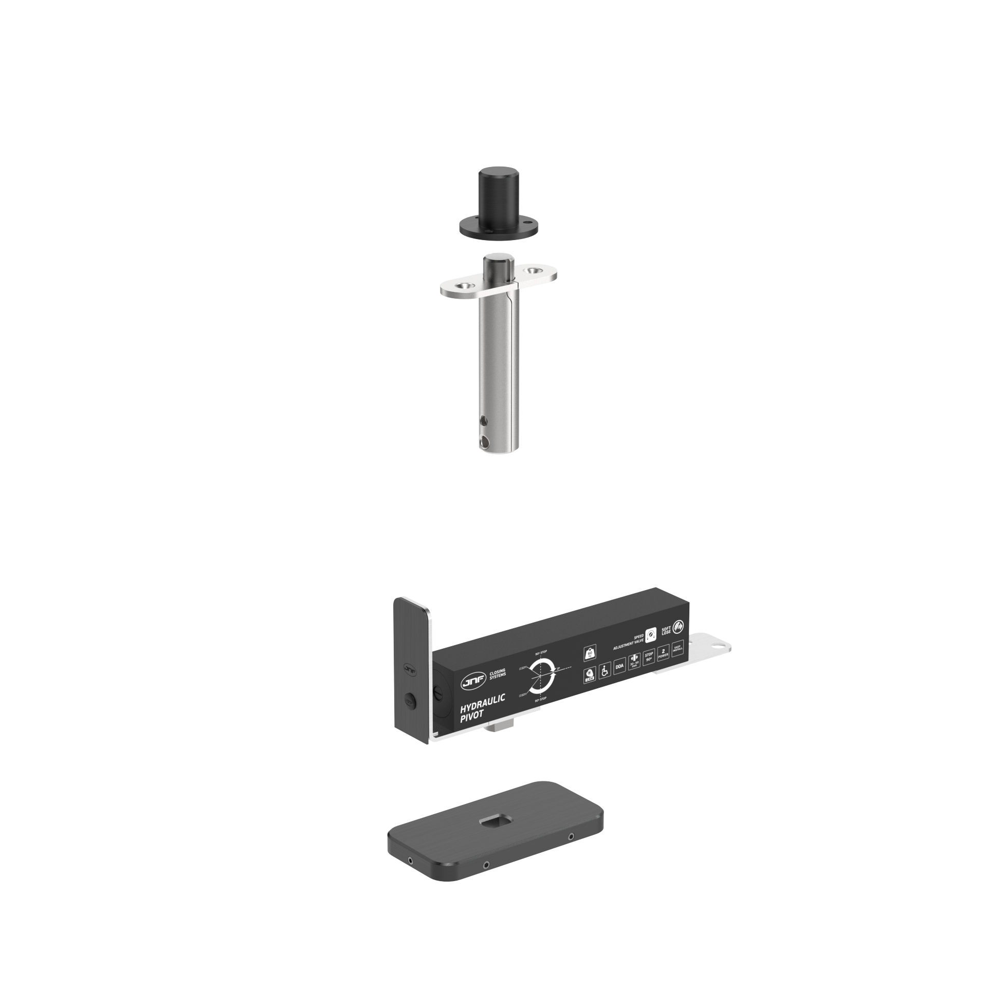 O sistema inclui um pivot hidráulico compacto, com CAM interna e válvula de fecho, que controla o movimento da porta de forma silenciosa e contínua. A abertura é leve, o fecho é suave e o gesto é natural, perfeito para interiores residenciais, hotelaria e ambientes de design contemporâneo.