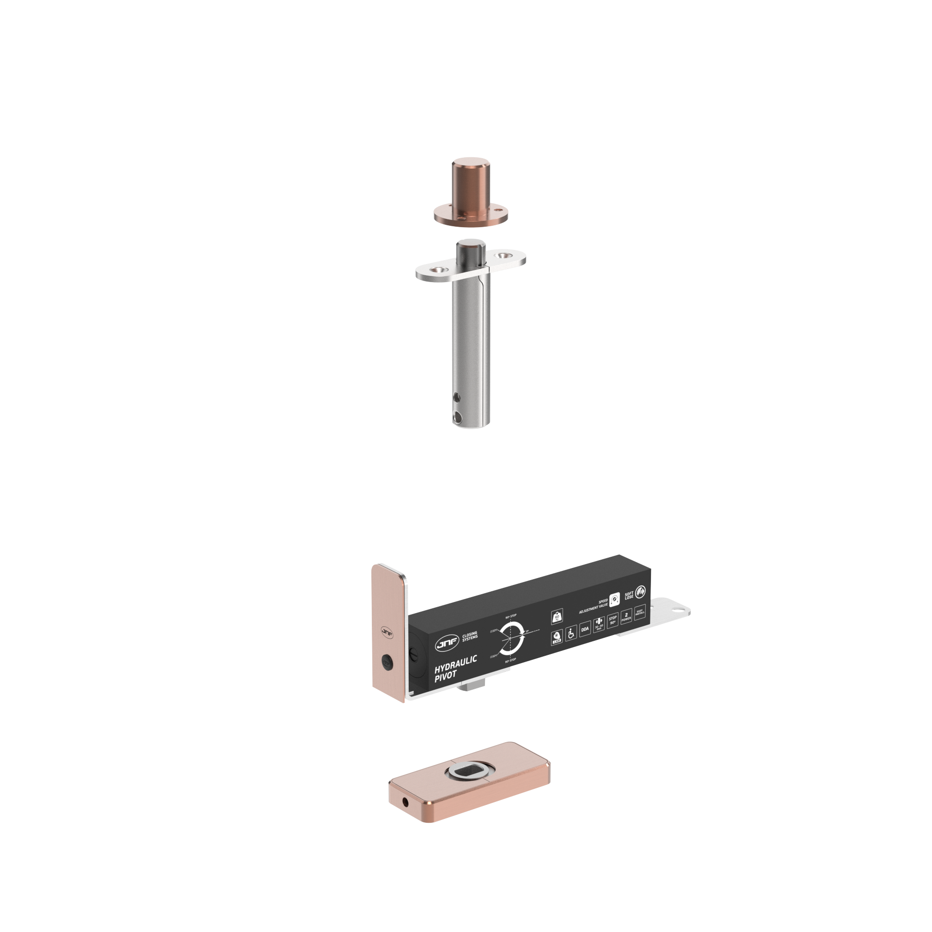 60 EDGE é a solução pivotante ideal para portas interiores até 60kg, onde o design pede descrição, suavidade e proporção. Instalado no canto da porta, com pivot fixo a 65mm do bordo, permite uma passagem útil de aproximadamente 850mm, maximizando a fluidez entre espaços e mantendo a elegância do vão.