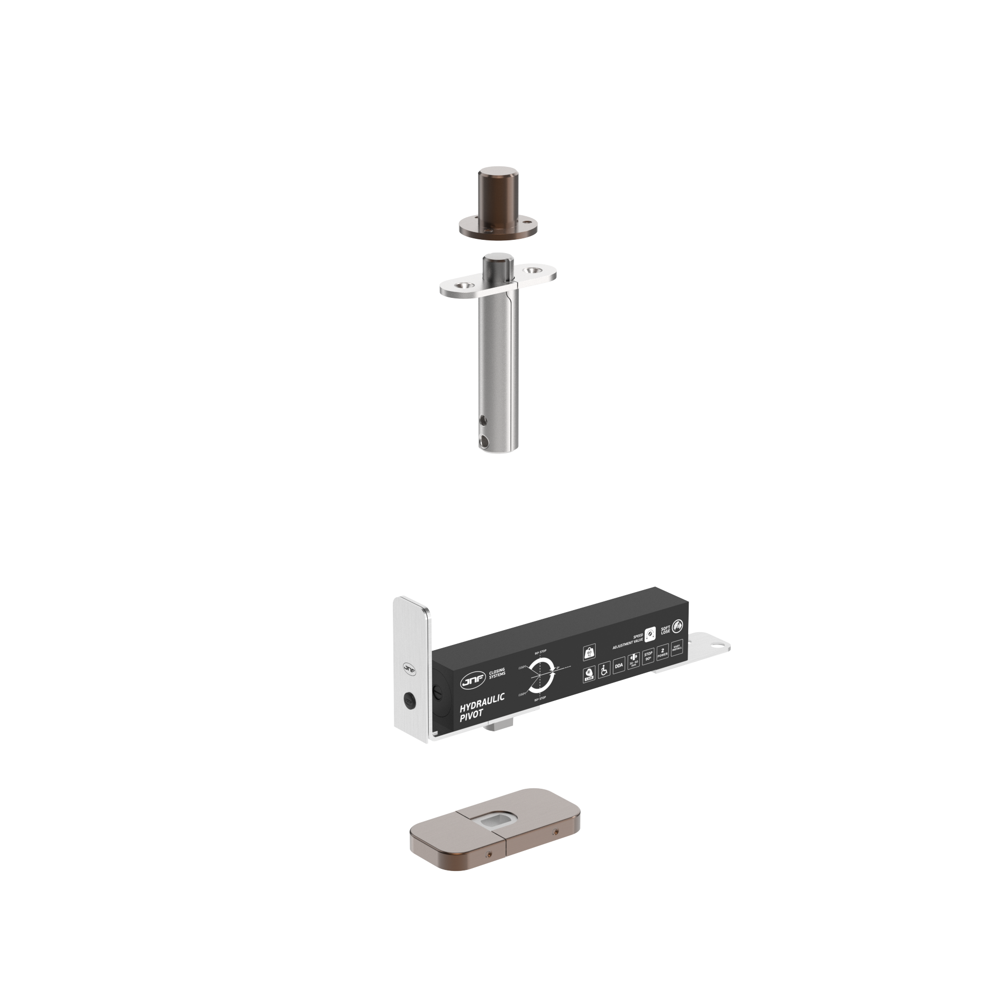 60 EDGE é a solução pivotante ideal para portas interiores até 60kg, onde o design pede descrição, suavidade e proporção. Instalado no canto da porta, com pivot fixo a 65mm do bordo, permite uma passagem útil de aproximadamente 850mm, maximizando a fluidez entre espaços e mantendo a elegância do vão.