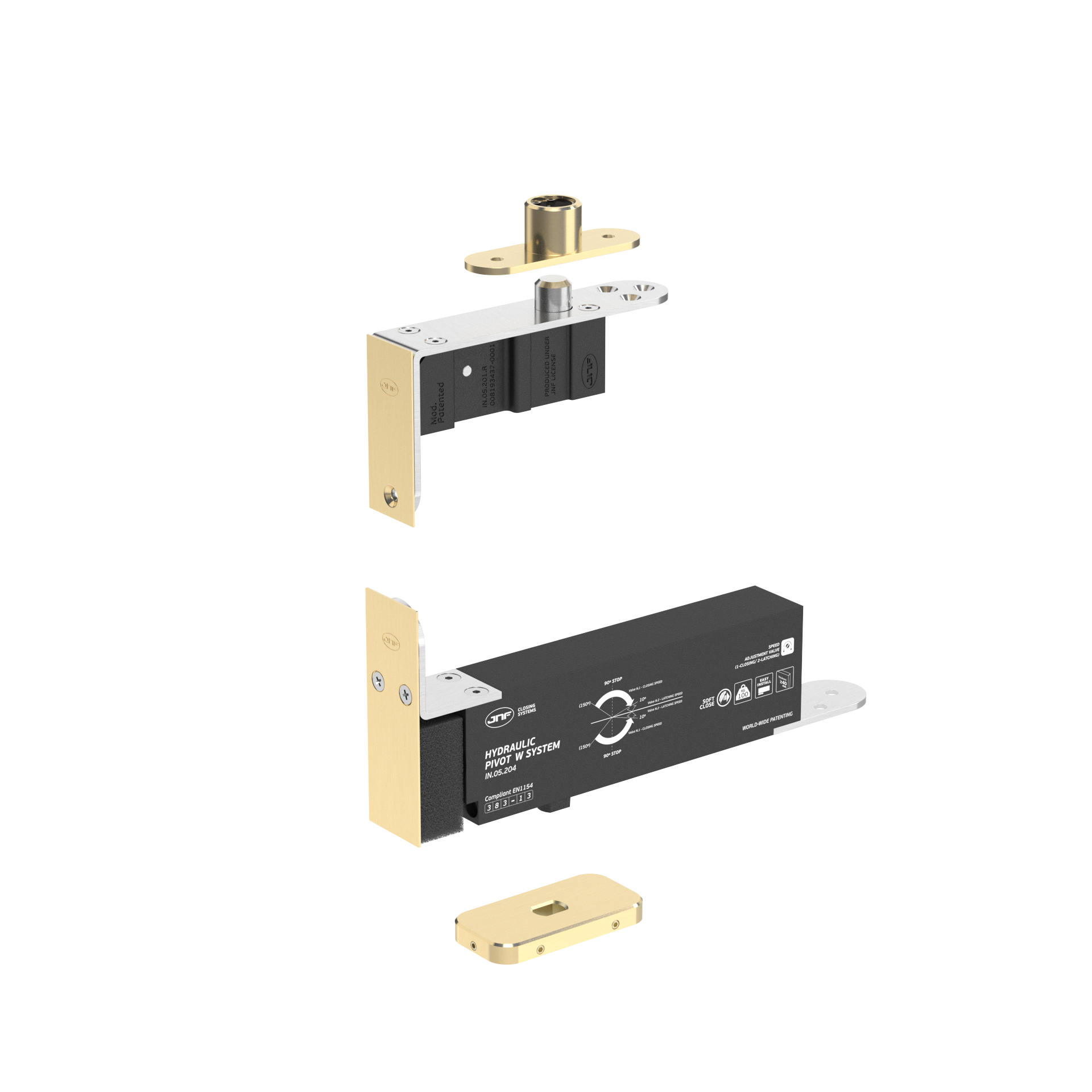 A sua função de retenção a 90o em ambas as direções é perfeita para zonas de passagem intensa, acessos técnicos ou interiores com portas que devem manter-se abertas com estabilidade. A tecnologia com CAM assegura uma abertura leve e progressiva, mesmo em folhas mais finas, conferindo uma experiência tátil precisa e controlada. Com ajuste em dois eixos no pivot inferior, a instalação é rápida, versátil e precisa.