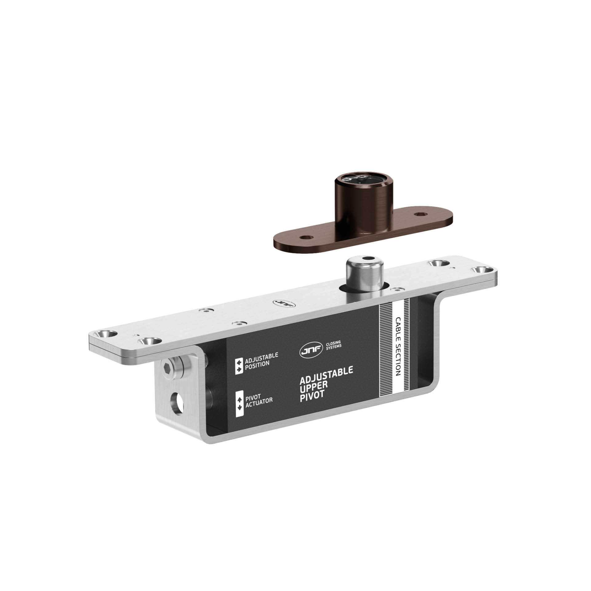100 PLUS oferece versatilidade total na instalação sem abdicar do desempenho. Projetado para portas até 100kg, este sistema pivotante hidráulico permite ser instalado em qualquer posição ao longo da largura da porta, tornando-o ideal para portas amplas ou com geometrias personalizadas.