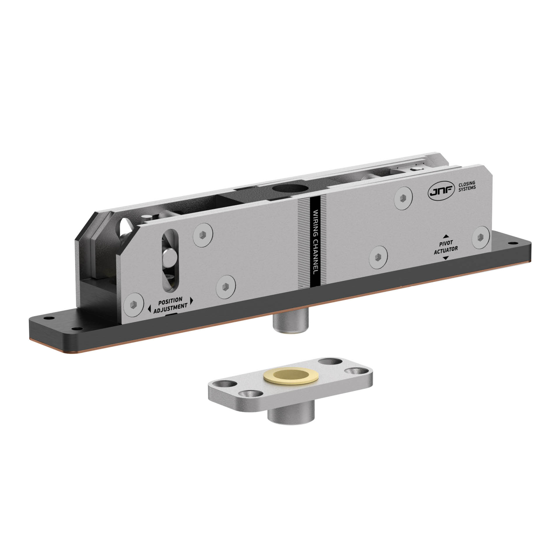 100 PLUS oferece versatilidade total na instalação sem abdicar do desempenho. Projetado para portas até 100kg, este sistema pivotante hidráulico permite ser instalado em qualquer posição ao longo da largura da porta, tornando-o ideal para portas amplas ou com geometrias personalizadas.