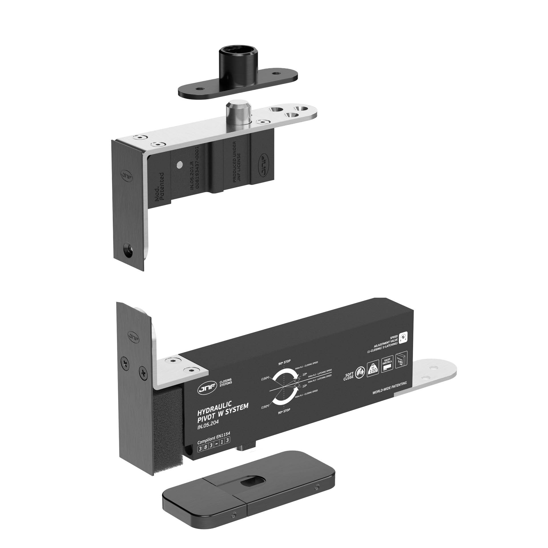 100 EDGE PROFILE é um sistema pivotante hidráulico de instalação lateral (no canto da porta), concebido para portas até 100kg com perfis de alumínio ou aço de baixa secção, como os utilizados em caixilharias minimalistas e soluções técnicas de elevado rigor dimensional.