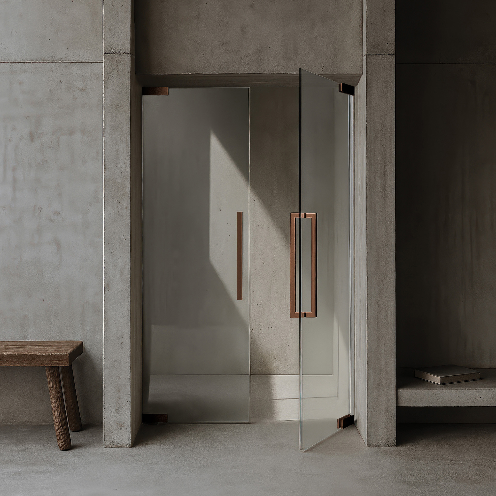 Tanto o pivot inferior como o superior têm ajuste em dois eixos, facilitando uma instalação precisa, mesmo em contextos técnicos exigentes. Com dimensões compactas e linhas limpas, o W60 GLASS respeita o desenho do espaço e valoriza a transparência do vidro.