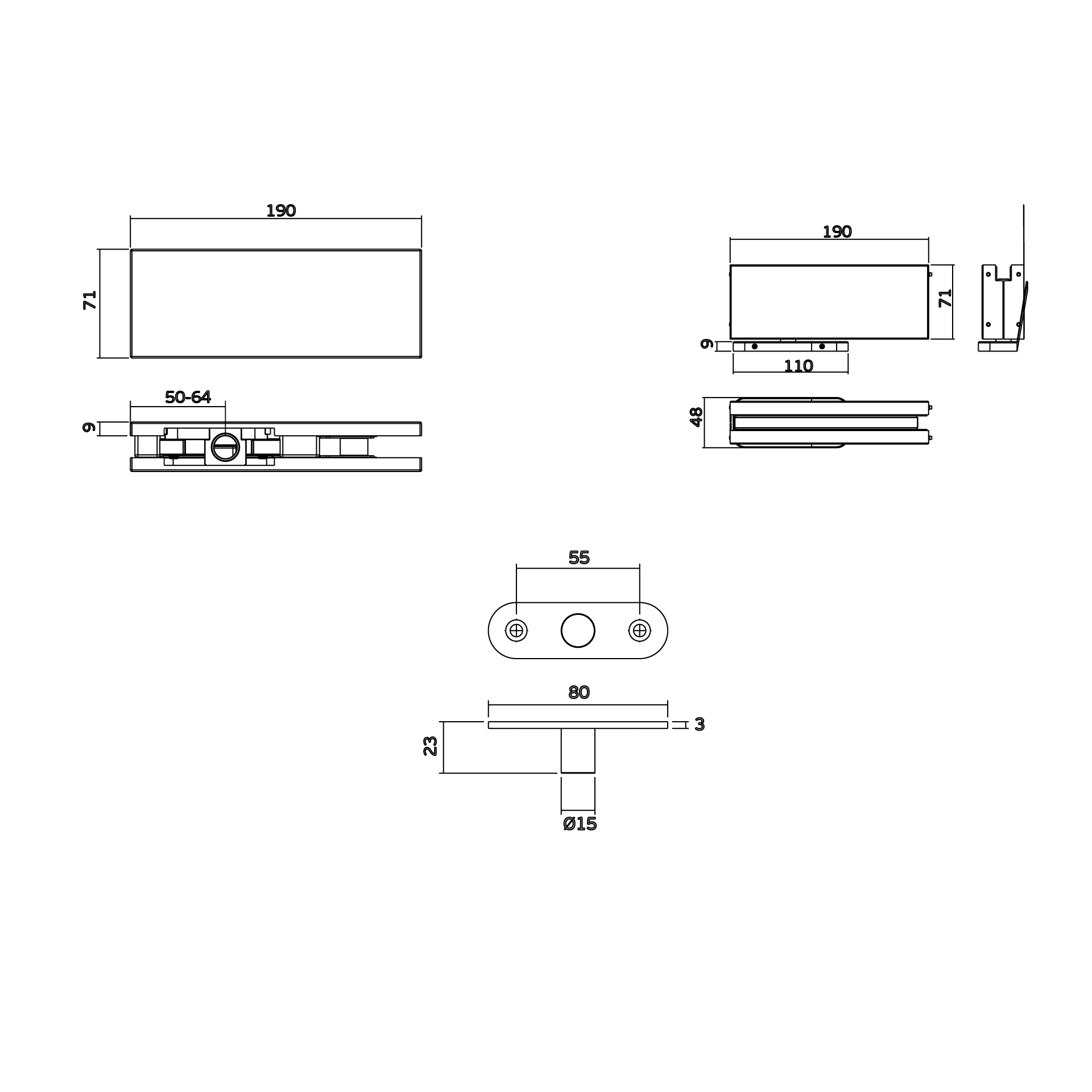 Tanto o pivot inferior como o superior possuem ajuste em dois eixos, permitindo um alinhamento perfeito e instalação versátil.