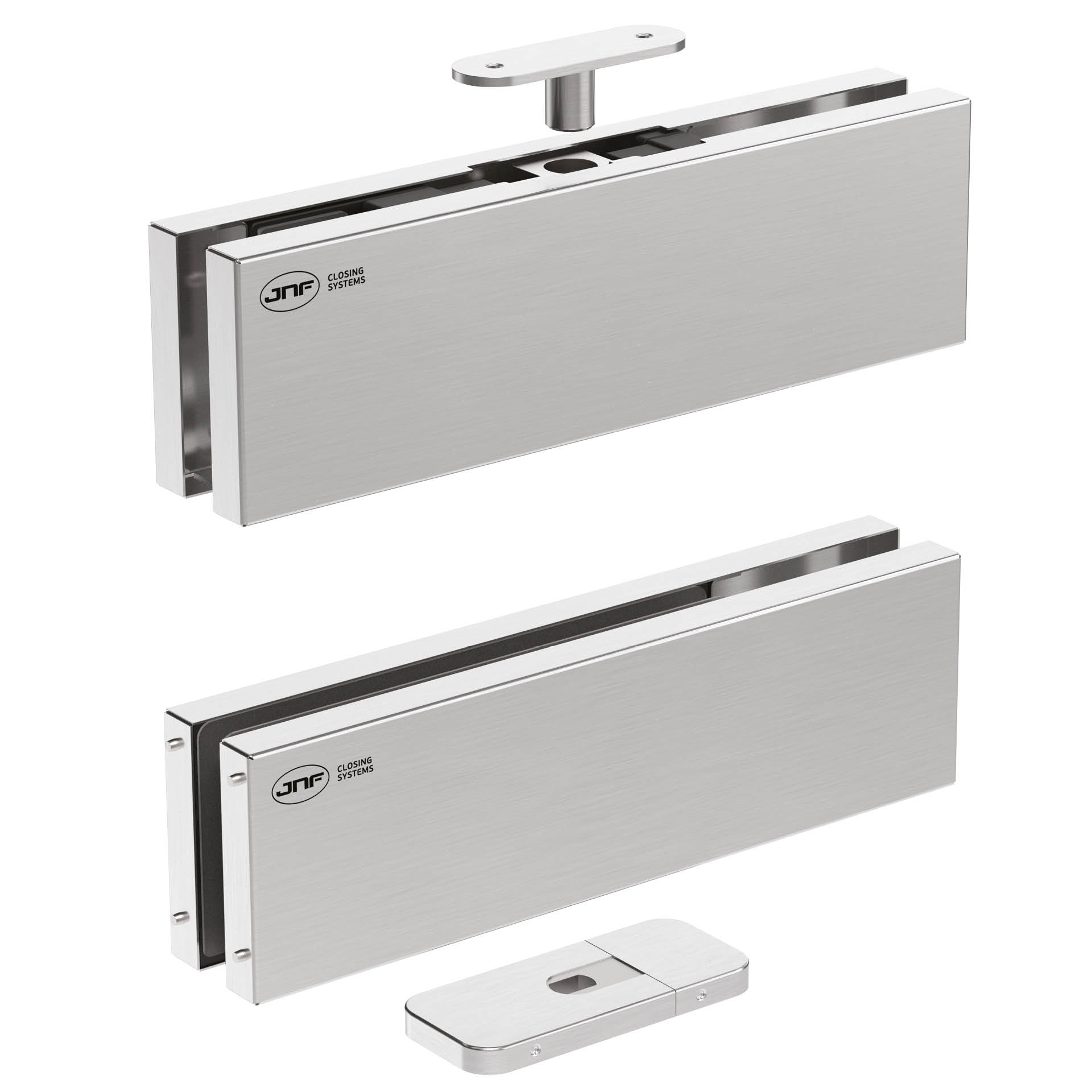 W360 GLASS é um sistema pivotante hidráulico de rotação contínua a 360o, concebido para portas de vidro temperado até 15mm de espessura e peso até 200kg. Com instalação flexível ao longo da largura da porta, o W360 GLASS adapta-se a uma ampla variedade de projetos, desde portas centradas a folhas excêntricas, design de interiores arrojado ou soluções técnicas com circulação em ambas as direções.