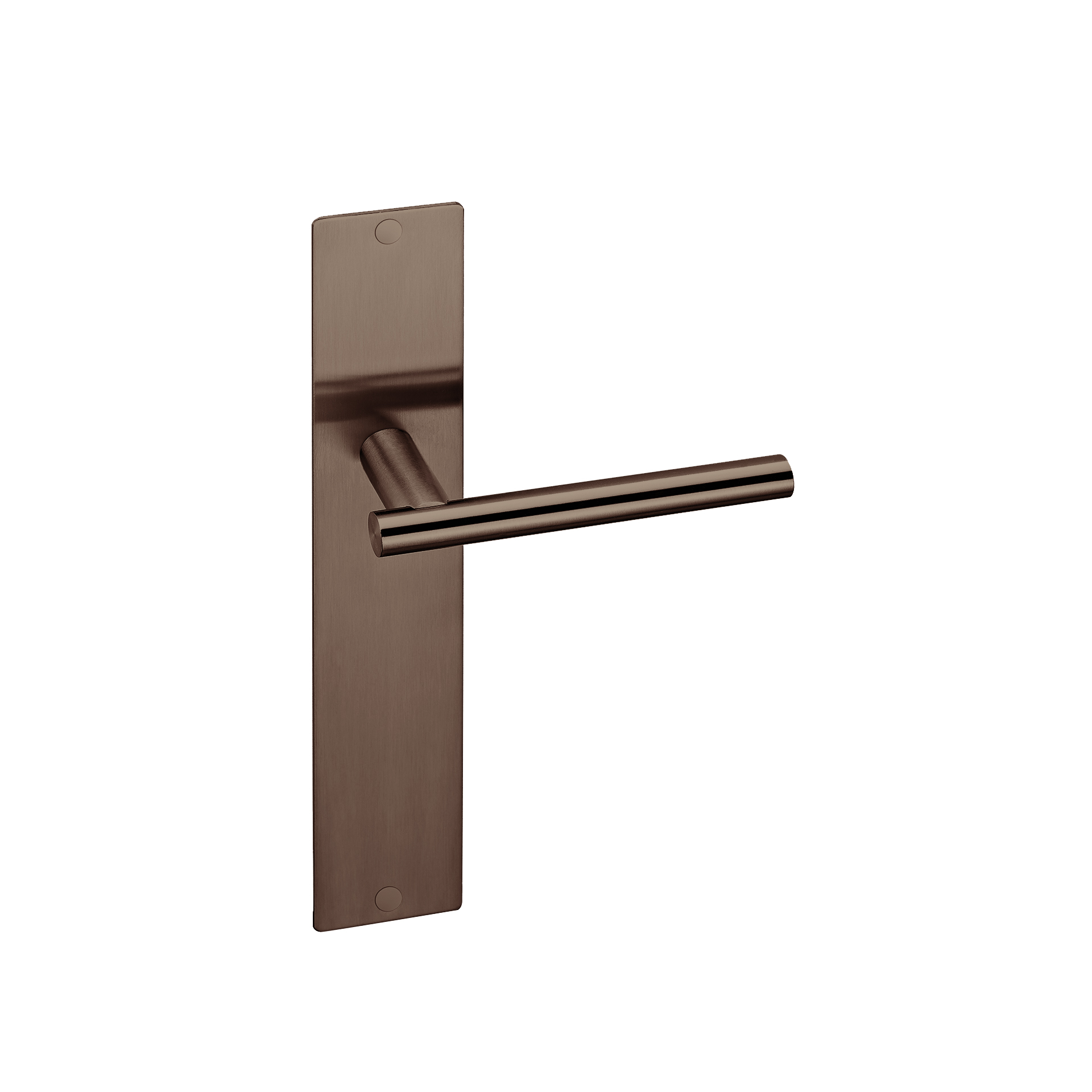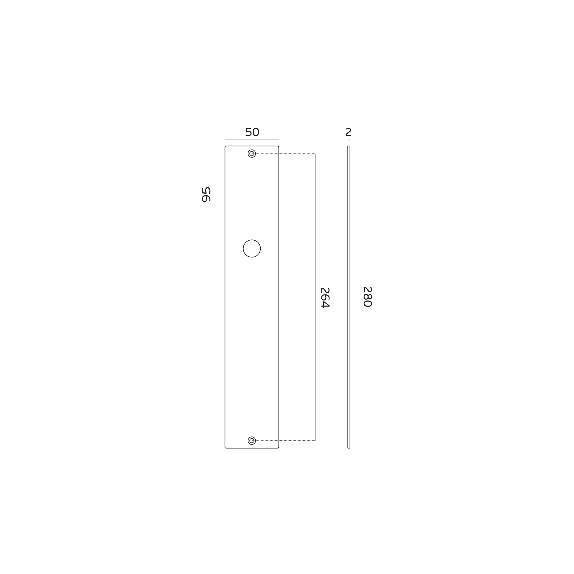 Placa cega com mola interior. Placa desenhada para ocultar furações de anteriores aplicações de puxadores.