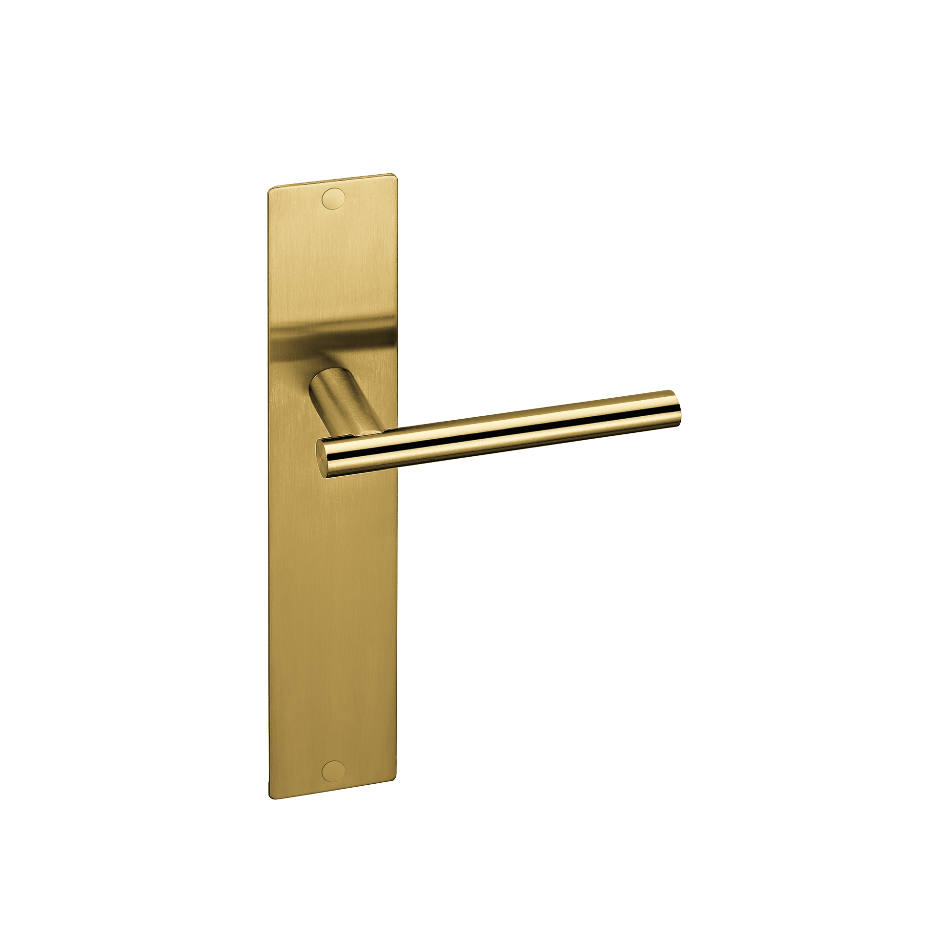 Placa cega com mola interior. Placa desenhada para ocultar furações de anteriores aplicações de puxadores.