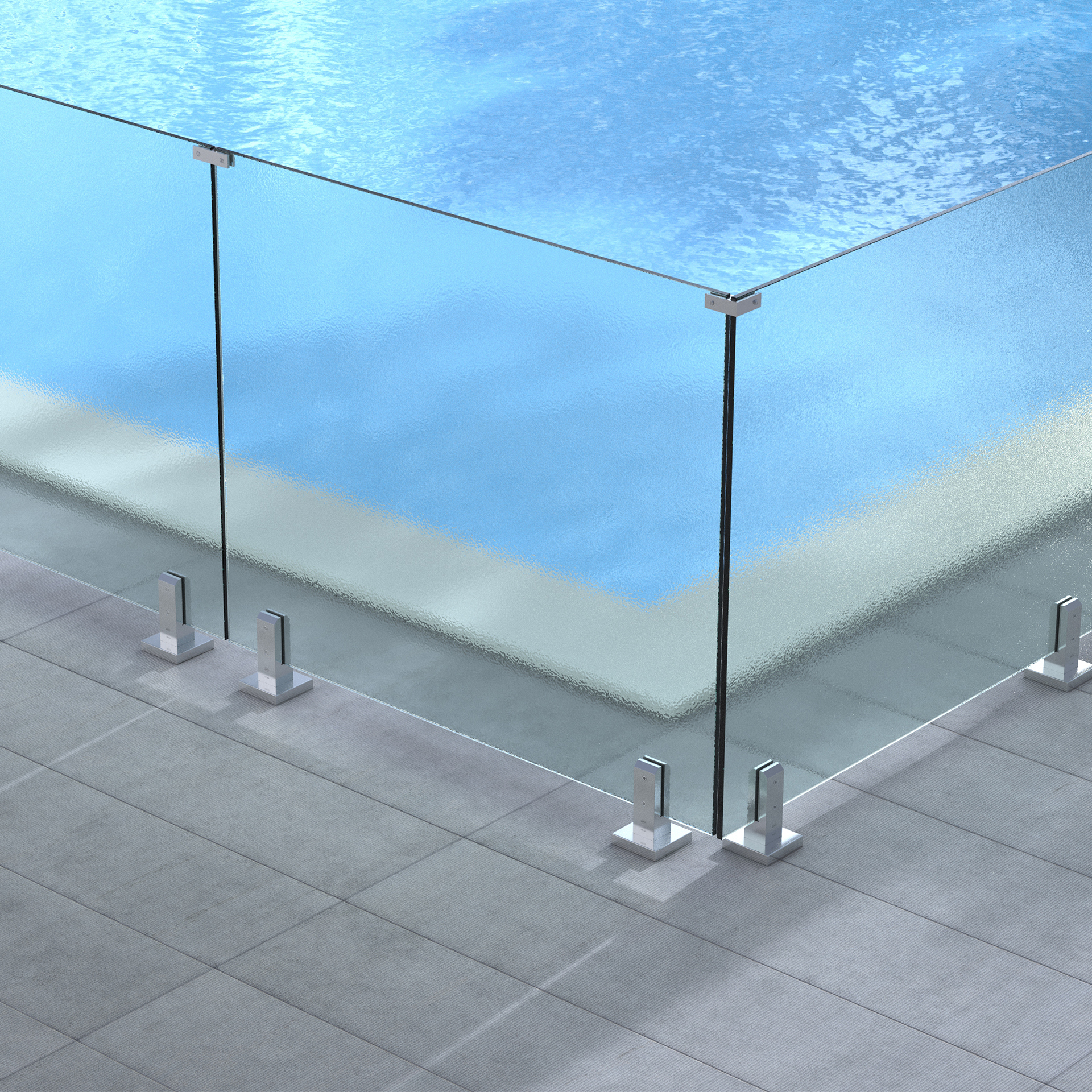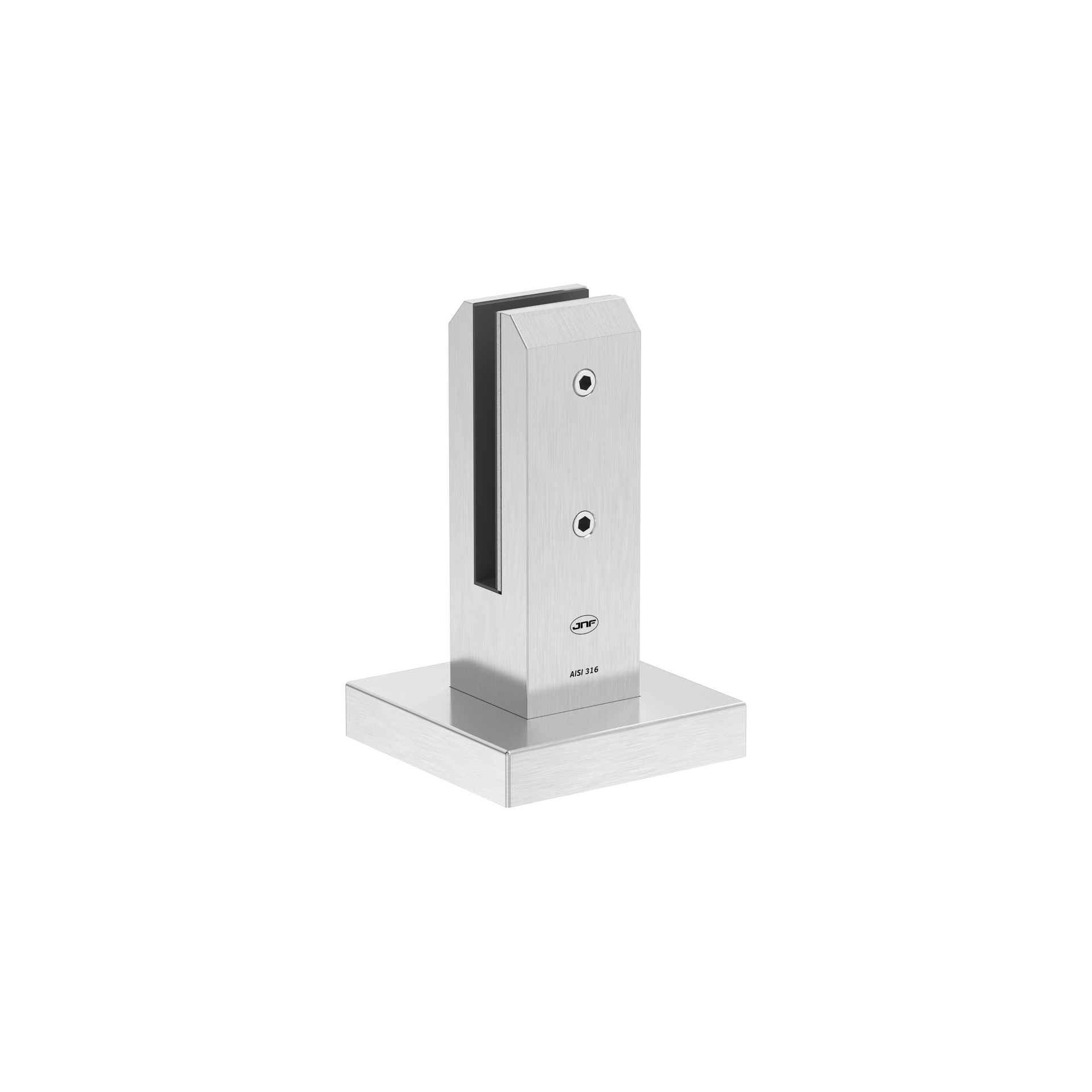 Suporte de pavimento para vidro monolítico temperado e/ou vidro temperado laminado. Espessura para vidro máx. 12,7mm.