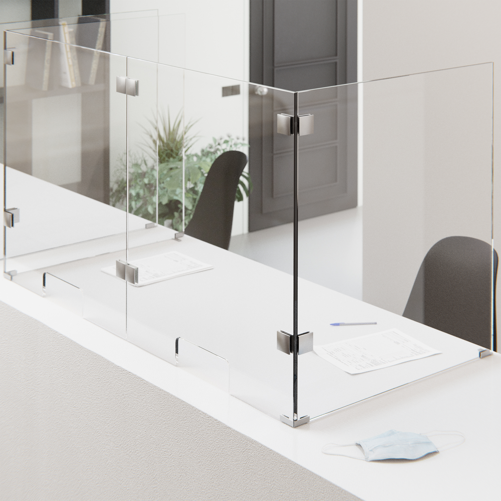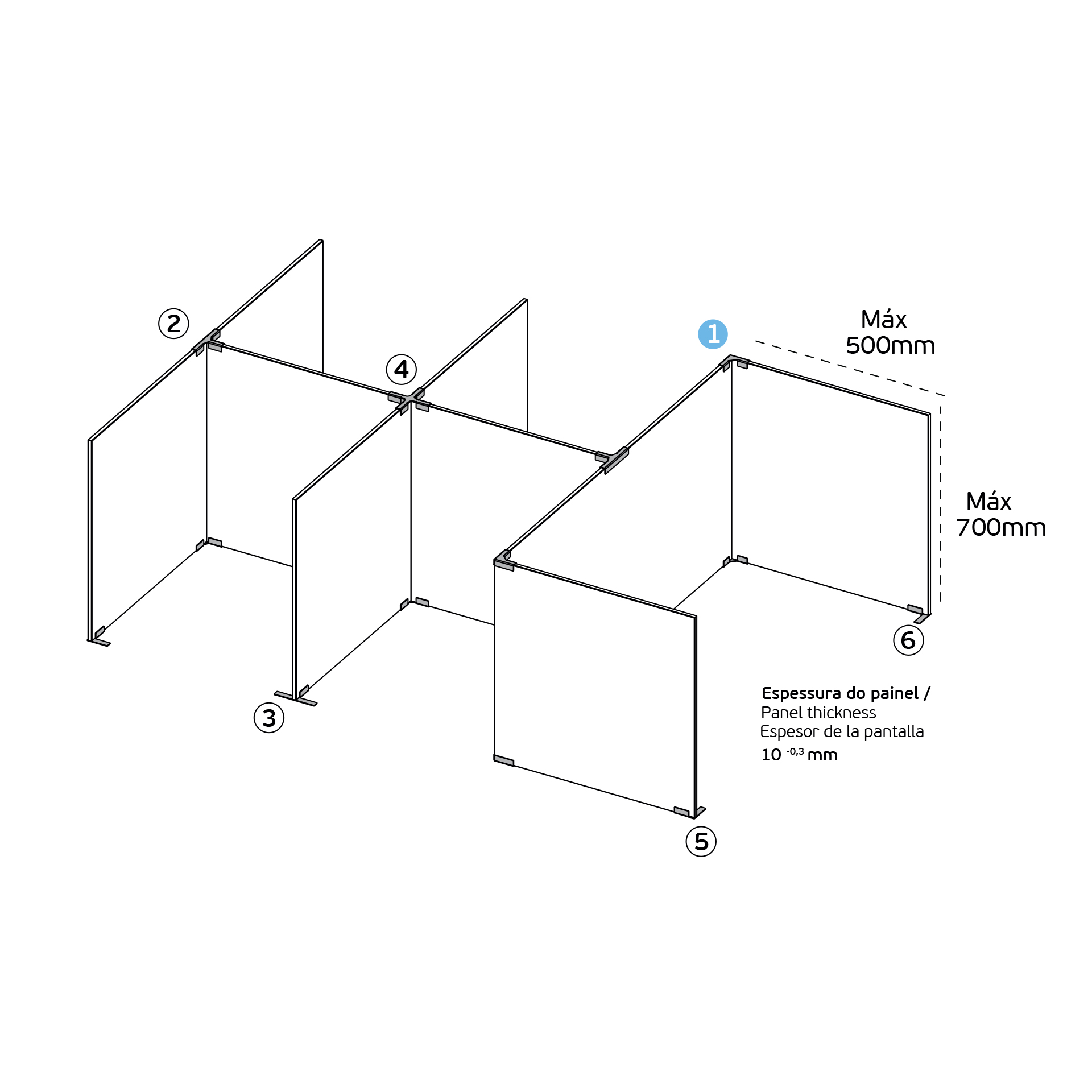 Suporte em aço inoxidável para painel de proteção para vidro ou acrílico. Para painéis com a espessura máxima de 10mm