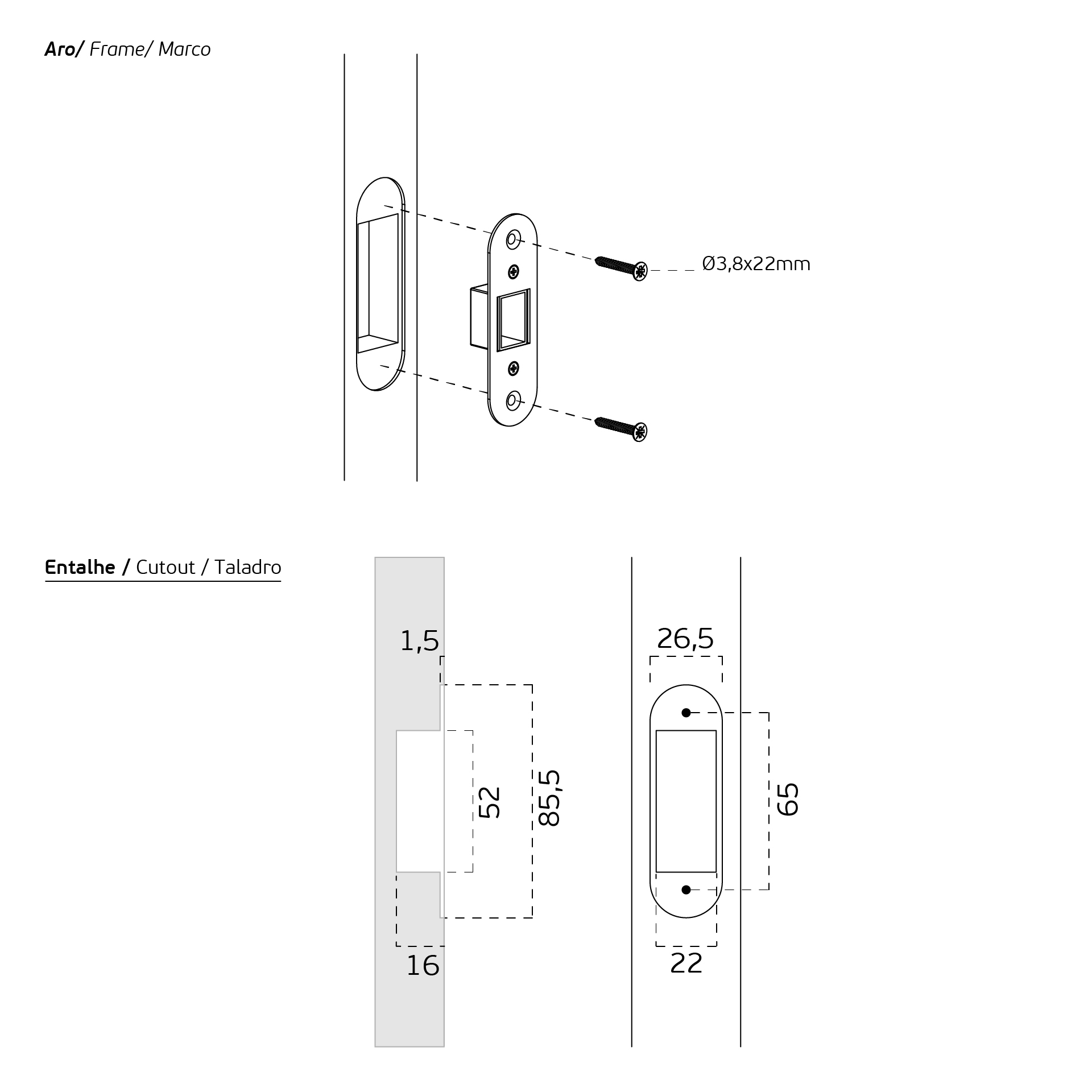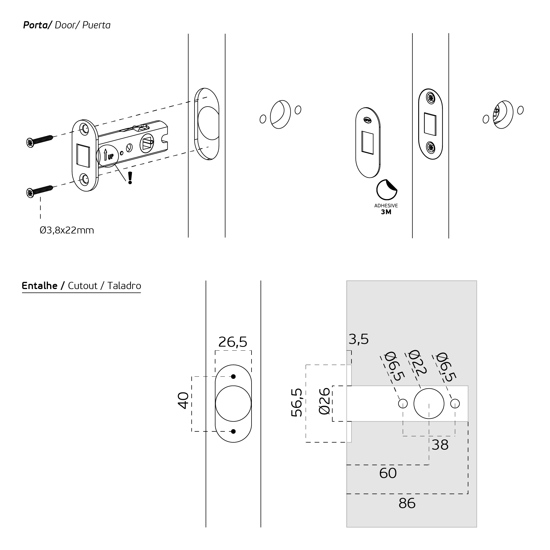 Fecho reversível para casa de banho. Para aplicar com fecho livre-ocupado.